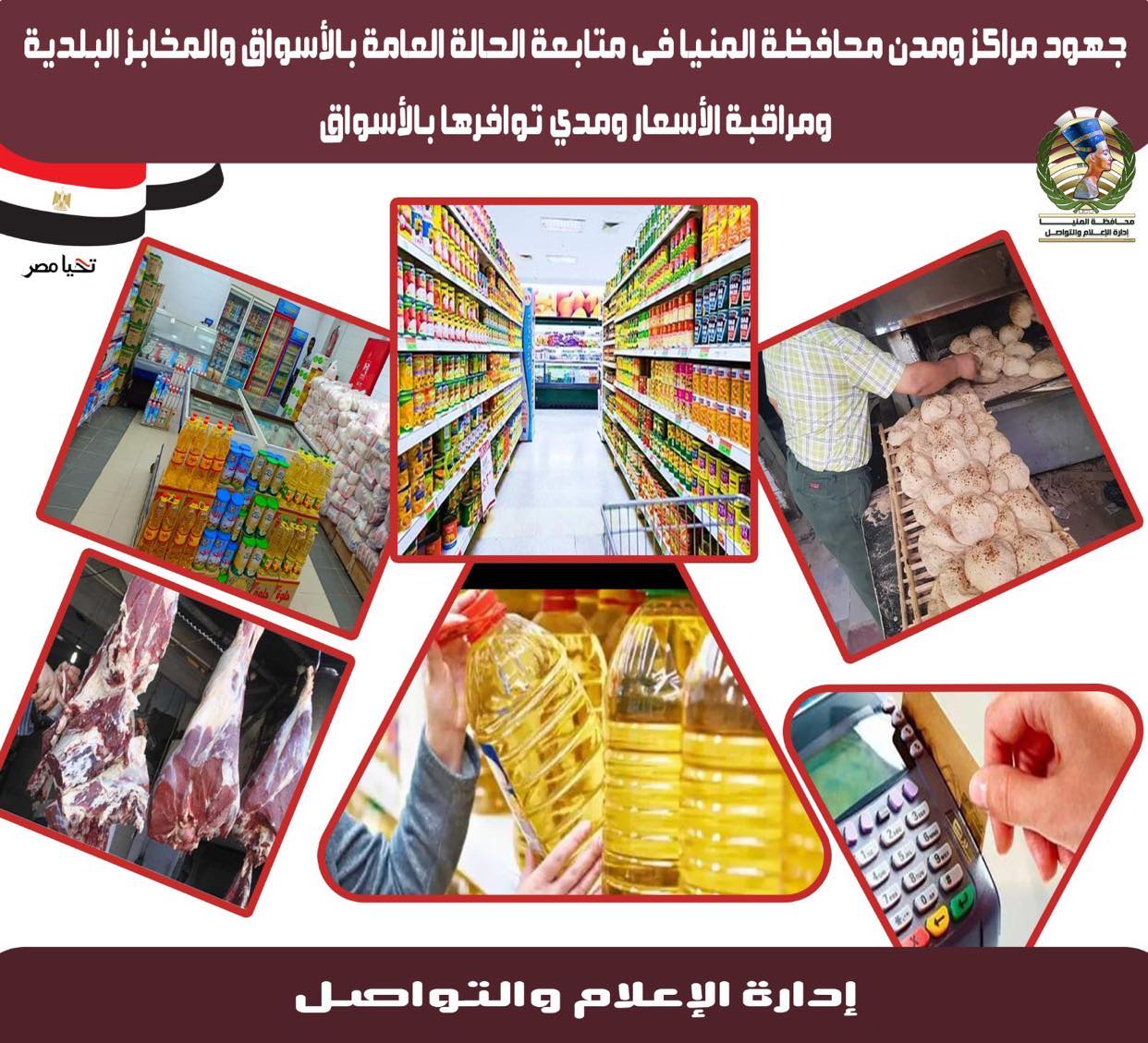 تنفيذًا لتكليفات اللواء أسامة القاضي محافظ المنيا، تواصل الوحدات المحلية بالمنيا، جهودها في تنظيم الحملات التفتيشية والرقابية لرصد المخالفات وتحقيق الانضباط على السلع التموينية والمواد الغذائية، وذلك من خلال المرور على المخابز البلدية والأسواق، للتأكد من جودة المعروض من المنتجات على المواطنين.