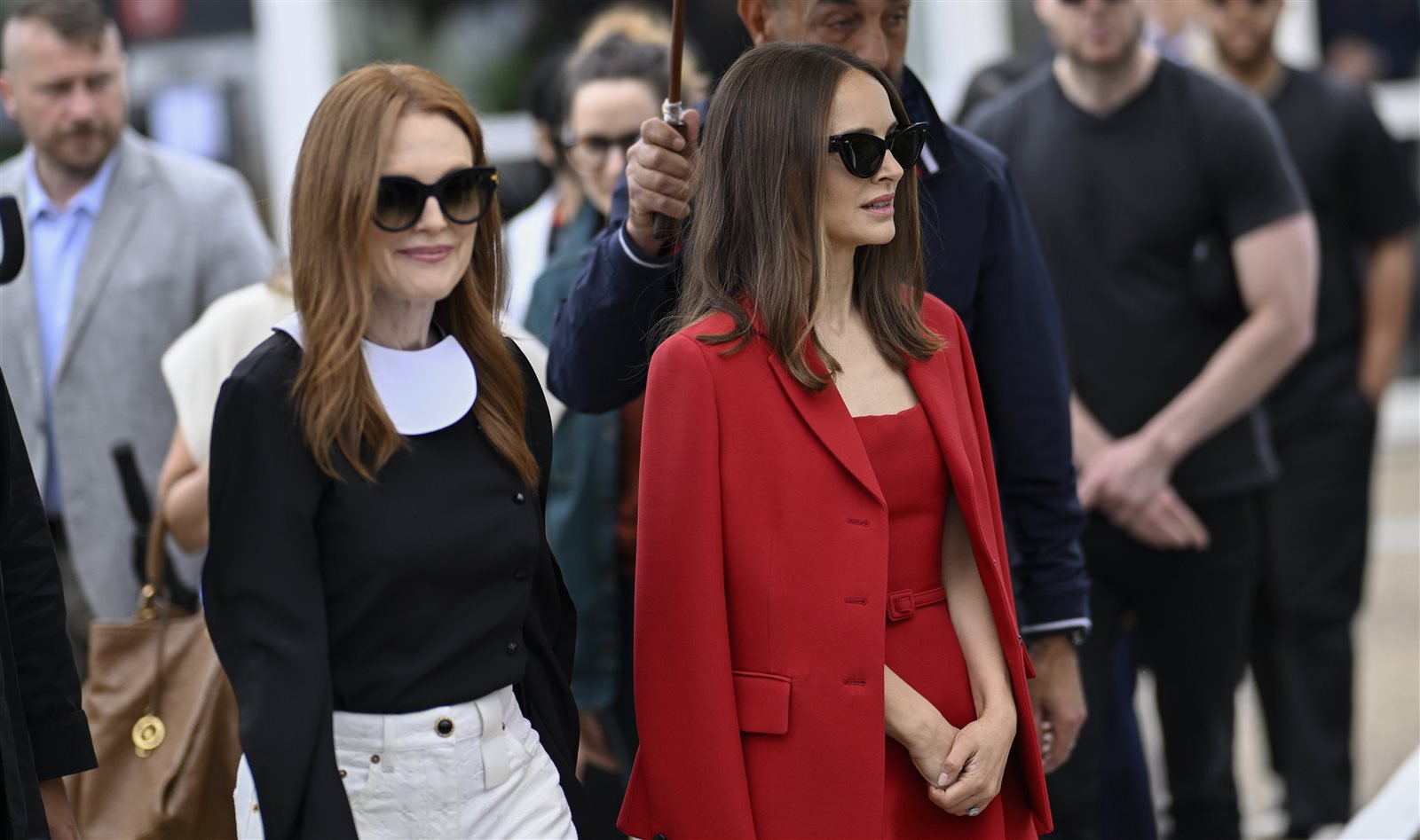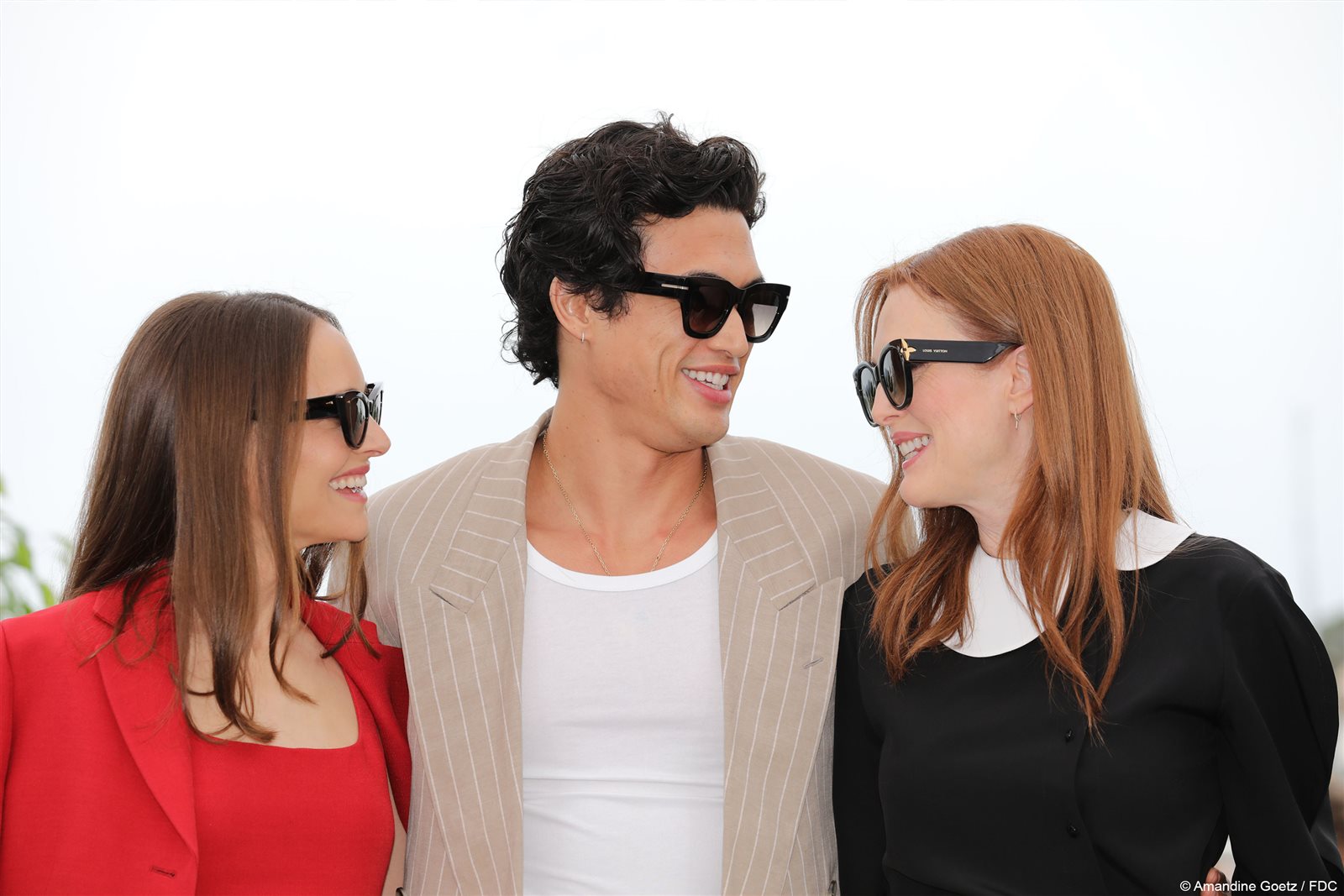 واختارت الممثلة جوليان مور، الظهور بملابس ذات طابع كاجوال، فارتدت بنطال جينز أبيض اللون، وبلوزة باللونين الأسود والأبيض، فيما تألقت ناتالي بورتمان، بفستان أحمر جذاب، وبسيط، وجاكت فوقه بلون مماثل.