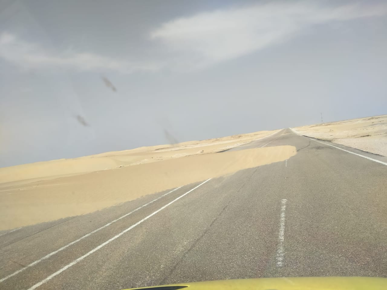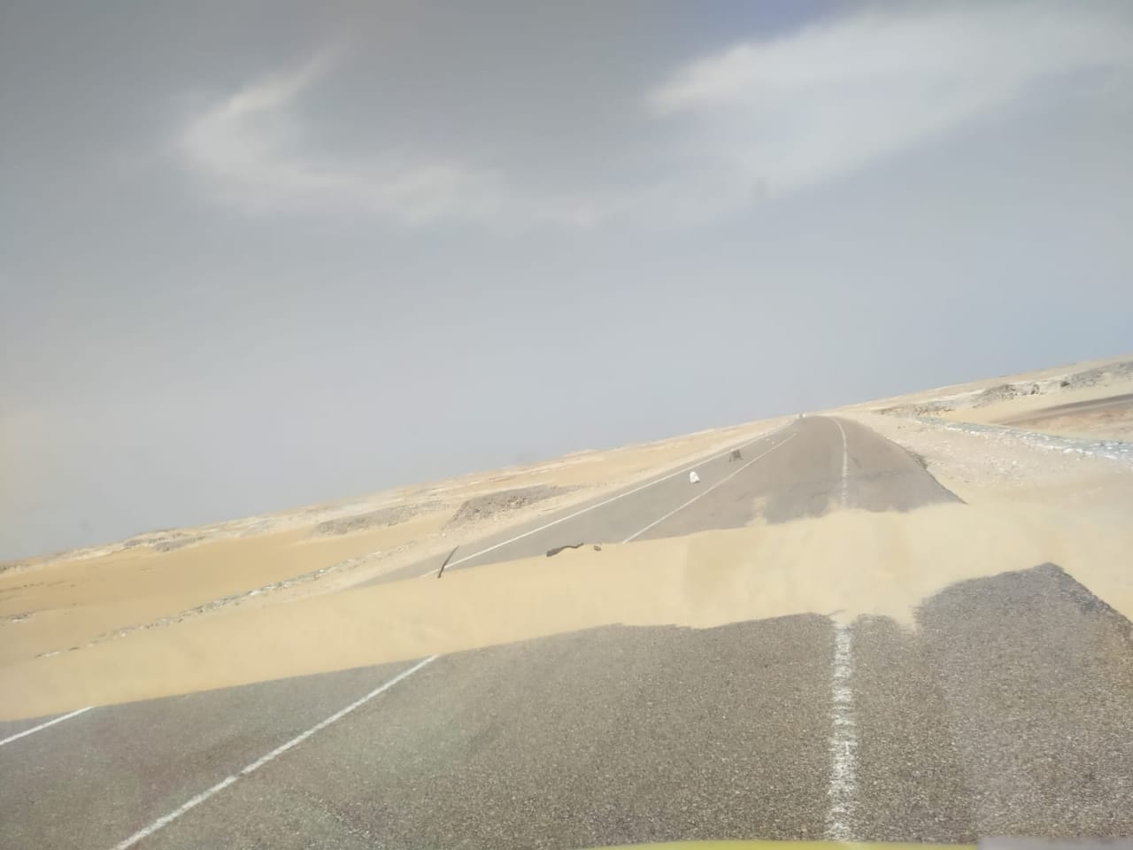 وتسببت الكثبان الرملية بغلق محور ديروط – الفرافرة في منطقة الكيلو 190 من المحور بشكل كامل مما يعوق مرور أي مركبات على المحور.