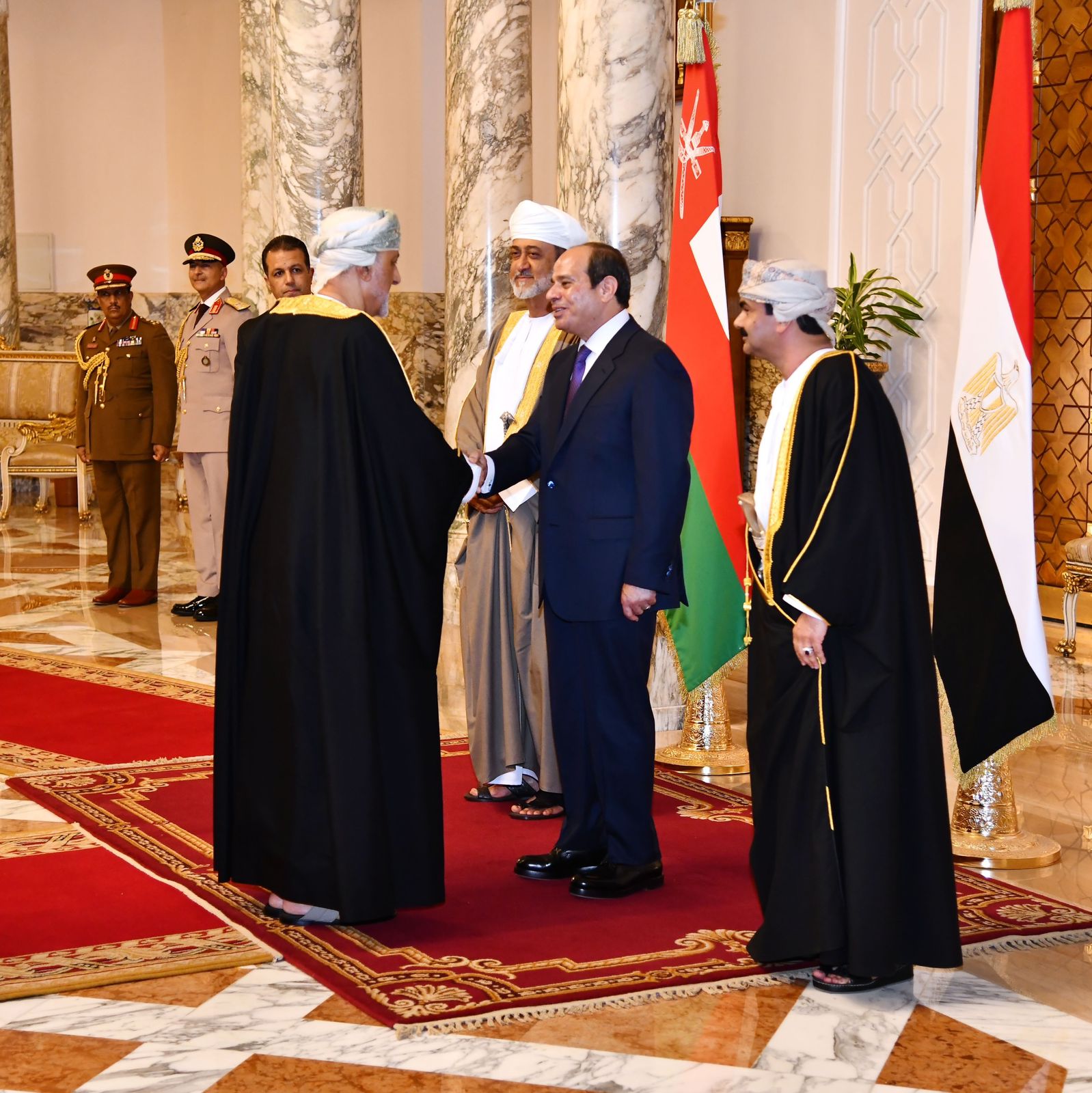 استقبل الرئيس عبد الفتاح السيسي اليوم في قصر الاتحادية جلالة السلطان هيثم بن طارق آل سعيد، سلطان عمان، حيث أقيمت مراسم الاستقبال الرسمي وتم عزف السلامين الوطنيين واستعراض حرس الشرف.