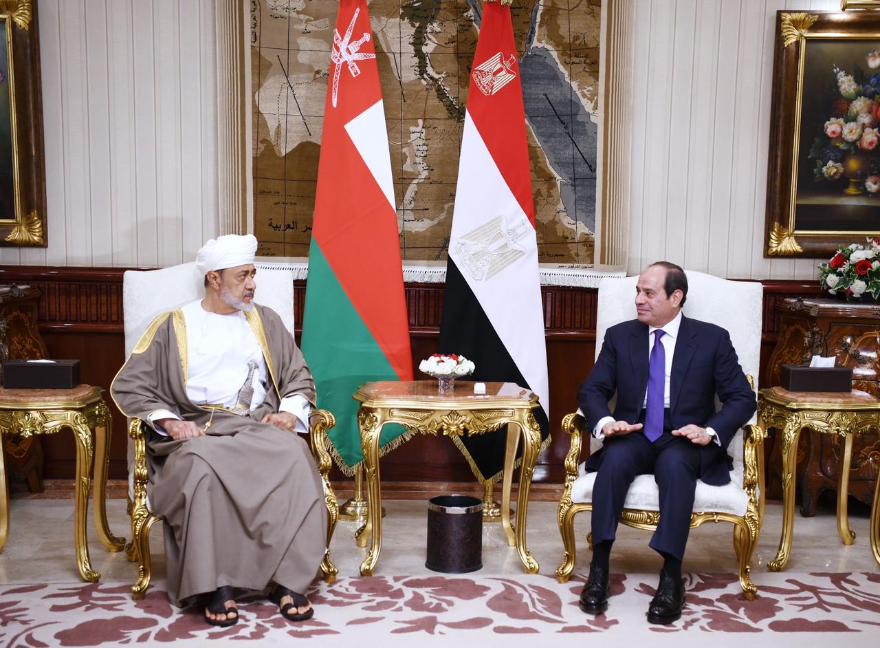 من جانبه؛ أشاد السلطان هيثم بن طارق بتميز العلاقات المصرية العمانية، وأواصر المودة والأخوة التي تجمع بين الشعبين الشقيقين عبر التاريخ، مؤكدًا حرص عمان على تعزيز أطر التعاون القائمة بين البلدين وفتح آفاق جديدة للتعاون الثنائي بينهما في كافة المجالات خلال الفترة المقبلة، وذلك للبناء على النتائج الإيجابية التي تحققت في هذا الصدد خلال زيارة الرئيس إلى مسقط في يونيو ٢٠٢٢، فضلًا عن مواصلة التشاور والتنسيق بين الجانبين حول القضايا الإقليمية والدولية ذات الاهتمام المشترك، خاصةً في ضوء ما تمثله مصر من عمق استراتيجي وثقافي للأمة العربية، وعنصرًا أساسيًا في الحفاظ على أمن واستقرار المنطقة.