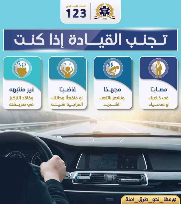 حذرت هيئة الإسعاف المصرية المواطنين من قيادة السيارات على الطرق في عدة حالات يمكن حينها وقوع حوادث أثناء القيادة.