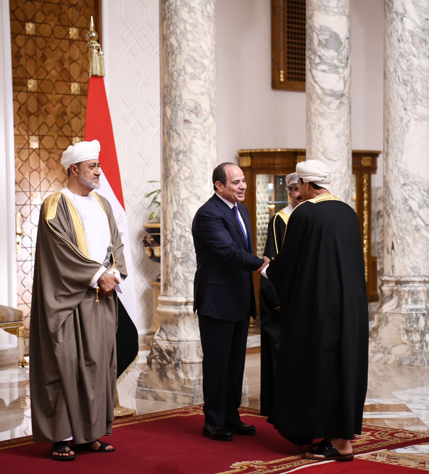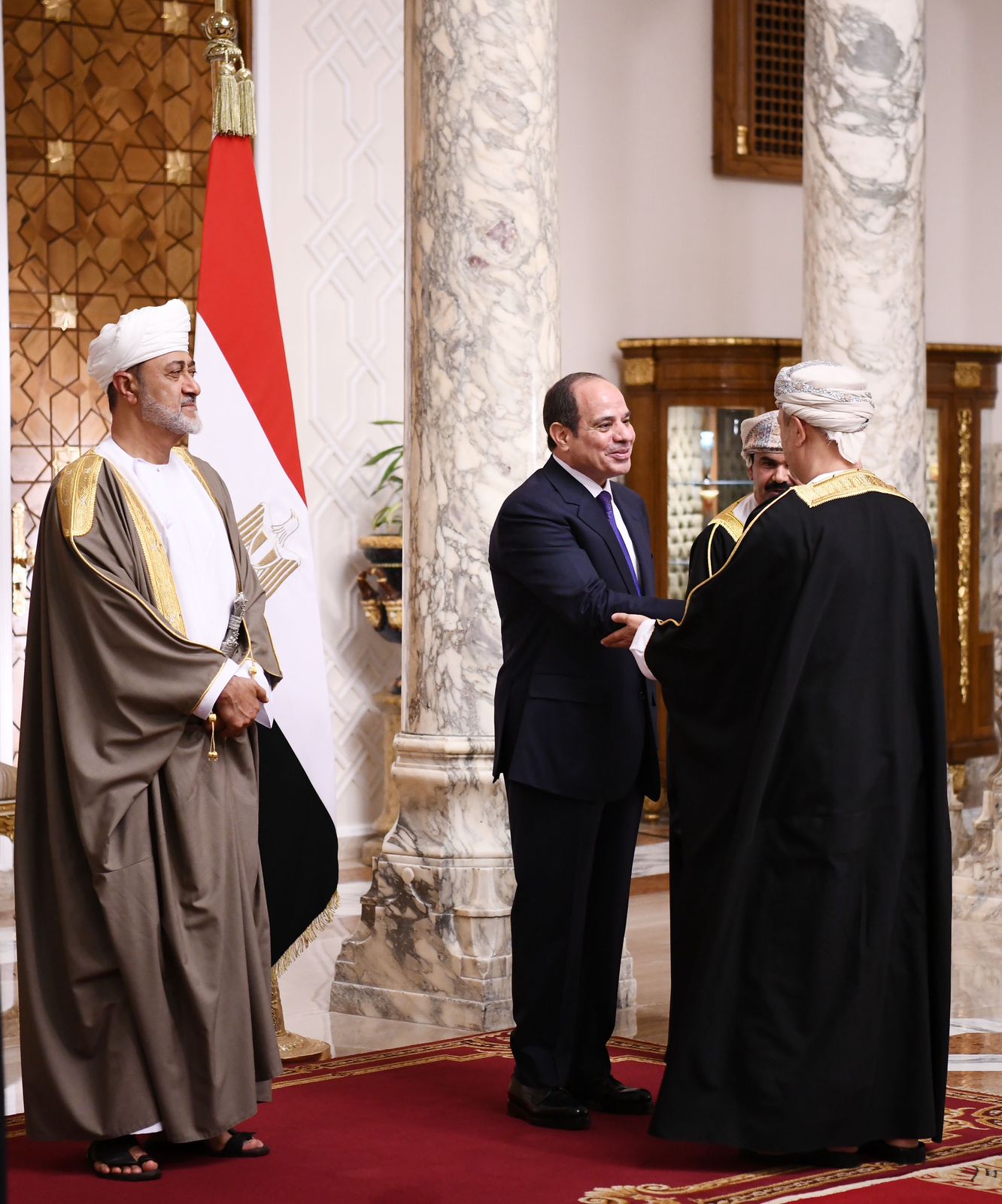 استقبل الرئيس عبد الفتاح السيسي في قصر الاتحادية جلالة السلطان هيثم بن طارق آل سعيد، سلطان عمان، حيث أقيمت مراسم الاستقبال الرسمي، وتم عزف السلامين الوطنيين واستعراض حرس الشرف.