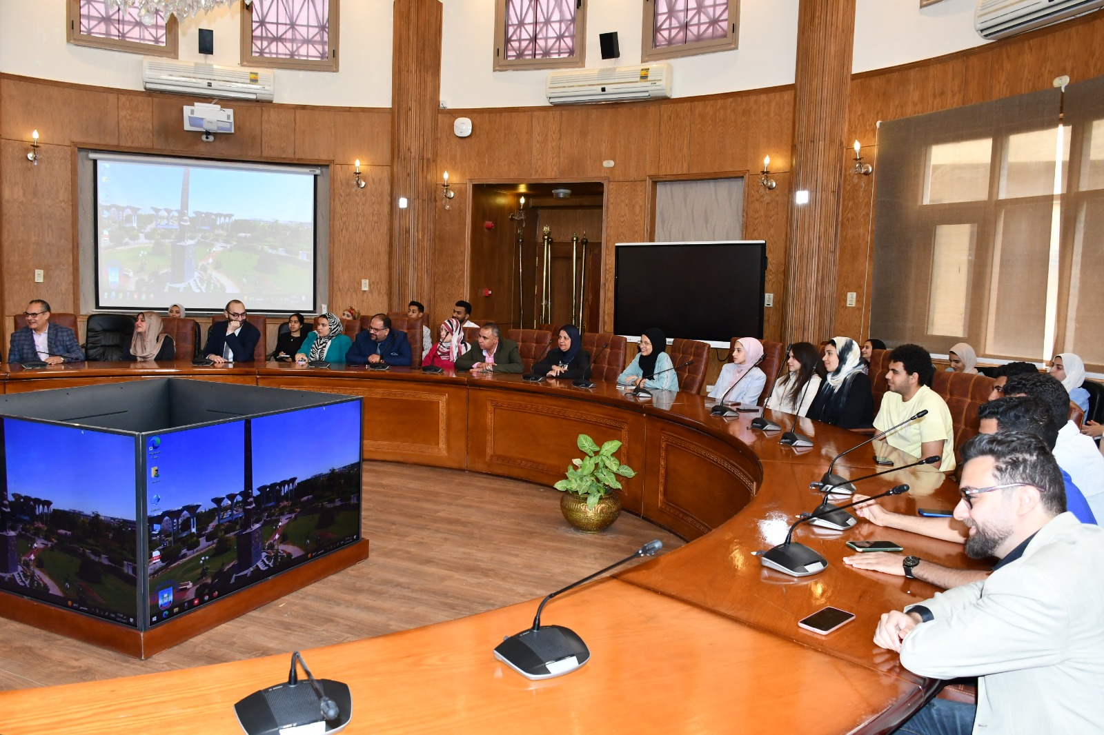 جاء اللقاء بحضور الدكتور محمد سعد زغلول نائب رئيس الجامعة لشئون الدراسات العليا والبحوث، والدكتور عادل السعدني عميد كلية الآداب والعلوم الإنسانية،والدكتورة غادة الطويل عميد كلية الحاسبات والمعلومات، والدكتورة سلوى فراج عميد كلية التجارة، والدكتور باسم الهادي وكيل كلية الهندسة لشئون التعليم والطلاب، والدكتور محمد تهامي رئيس قسم اللغة الإنجليزية بكلية الآداب والعلوم الإنسانية، والدكتورة عبير الشهاوى وكيل كلية الهندسة.