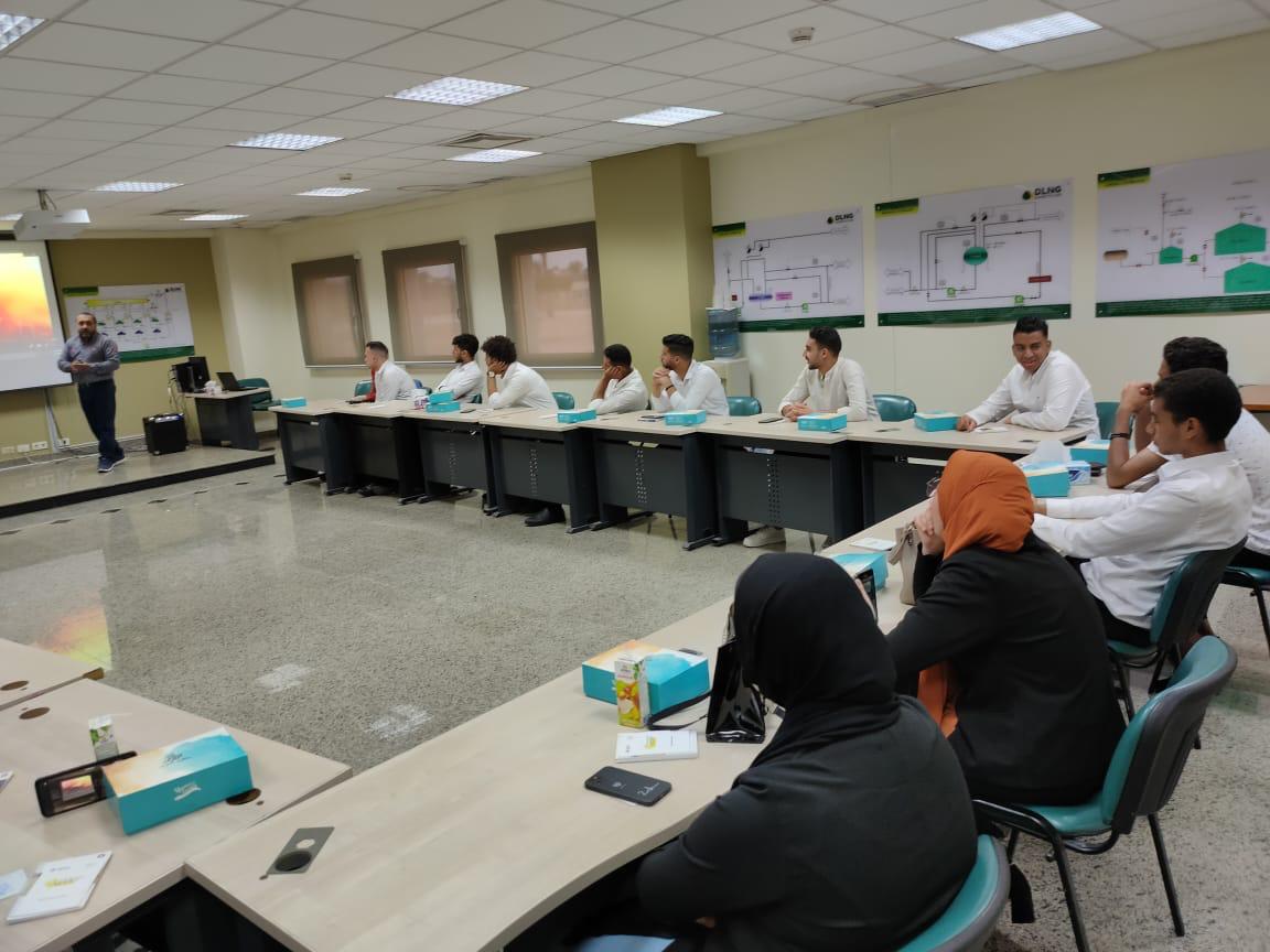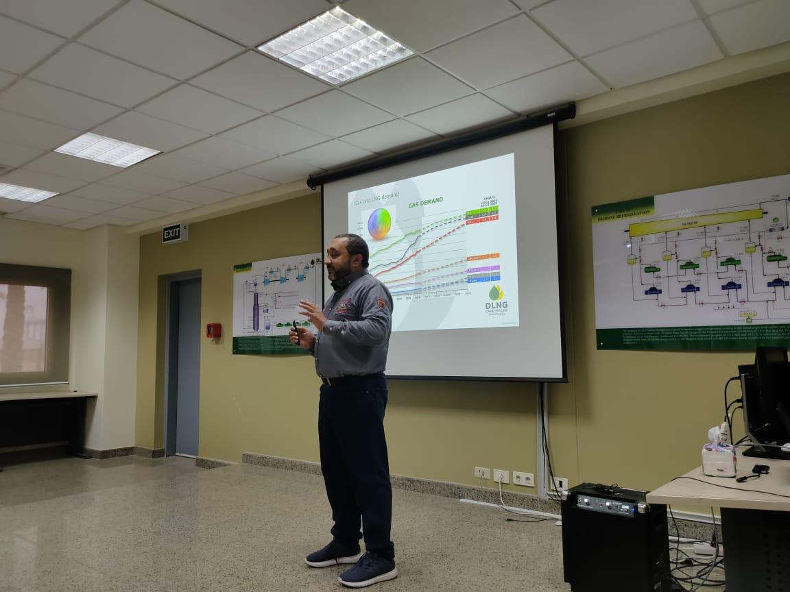 ثم بدأت الزيارة بإلقاء 3 محاضرات استهلت بمحاضرة عن نظرة عامة على مجال الغاز الطبيعى والاستثمارات الخاصة به وأعقبها محاضرة عن أنظمة الـ saftey وأهميتها بمواقع البترول والغاز وأهمية الالتزام بتعليمات الأمن والسلامة بالموقع، اختتمت اللقاء بمحاضرة عن محطة الإسالة بالمصنع ومكوناتها حيث تعرف الطلاب على أجزاء المحطة وأهمية كل جزء فيها.