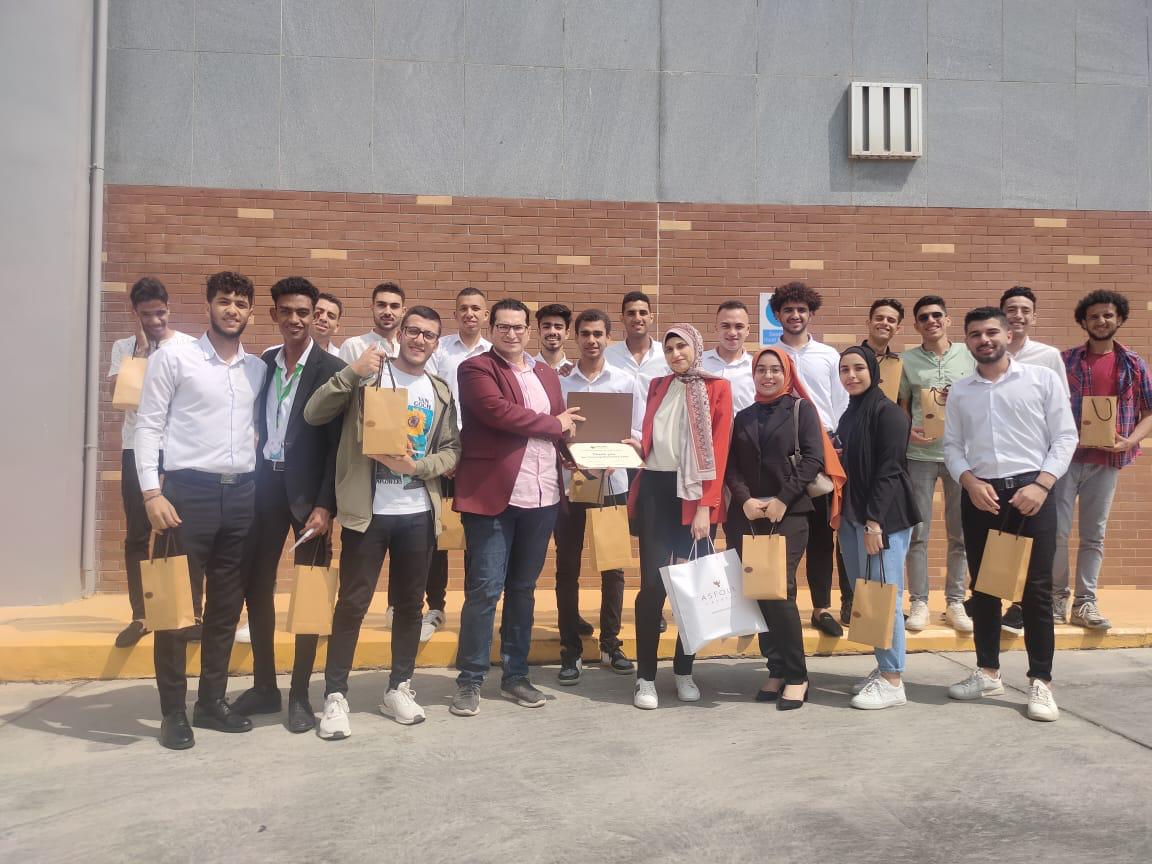 وبدأت الزيارة بجولة للطلاب وأعضاء الهيئة المعاونة المرافقين لهم م.م محمد محسن الخولى مدرس مساعد بكلية الهندسة والمهندسة بسنت أحمد رمضان المعيدة بكلية الهندسة.