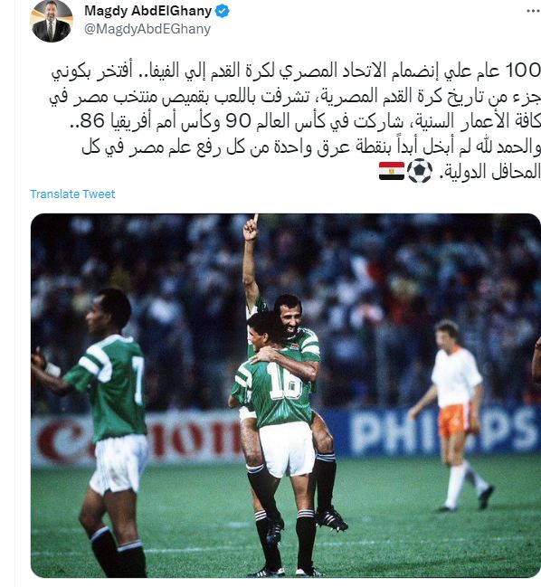 رد الكابتن مجدي عبد الغني لاعب منتخب مصر السابق، على تجاهله من قبل الاتحاد المصري لكرة القدم الذي احتفل بمرور 100 عام على الانضمام إلى الفيفا، بغلاف يحتوي على صور لرموز هامة في تاريخ كرة القدم، لكن يبدو أن الصورة لم تنل استحسان الكابتن مجدي عبد الغني.