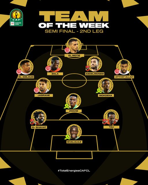 أعلن الاتحاد الأفريقي (كاف) عن التشكيل المثالي لدور نصف النهائي من بطولة دوري أبطال أفريقيا وشهد التشكيل سيطرة عربية بعدما وصل إلى المباراة النهائية نادي الأهلي المصري وفريق الوداد المغربي.