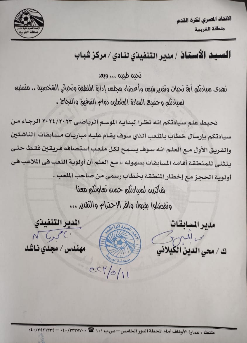 وكان نادي قحافة أعلن موافقة منطقة الغربية على استقبال ملعب مركز شباب مرحوم لمباريات الفريق الأول والناشئين في الموسم الجديد.