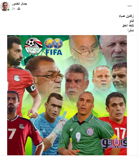 وجاء التقرير الذي نشرته “فيتو” اليوم الثلاثاء ردًّا على تجاهل مجلس إدارة اتحاد الكرة المصري، إبراز أسماء كثير من أساطير الكرة المصرية الحقيقيين، عندما نشر أول أمس على حسابه الرسمي صورة احتفاءً بمرور 100 عام على حصول مصر على عضوية الفيفا، متجاهلًا في الصورة أساطير الكرة المصرية الحقيقيين أمثال: حسام حسن وعصام الحضري وأحمد فتحي وسمير زاهر وجمال الغندور الذي مثل التحكيم المصري مرتين في كأس العالم، وأدار 6 مباريات في النسختين في إنجاز لم يتكرر للتحكيم المصري.
