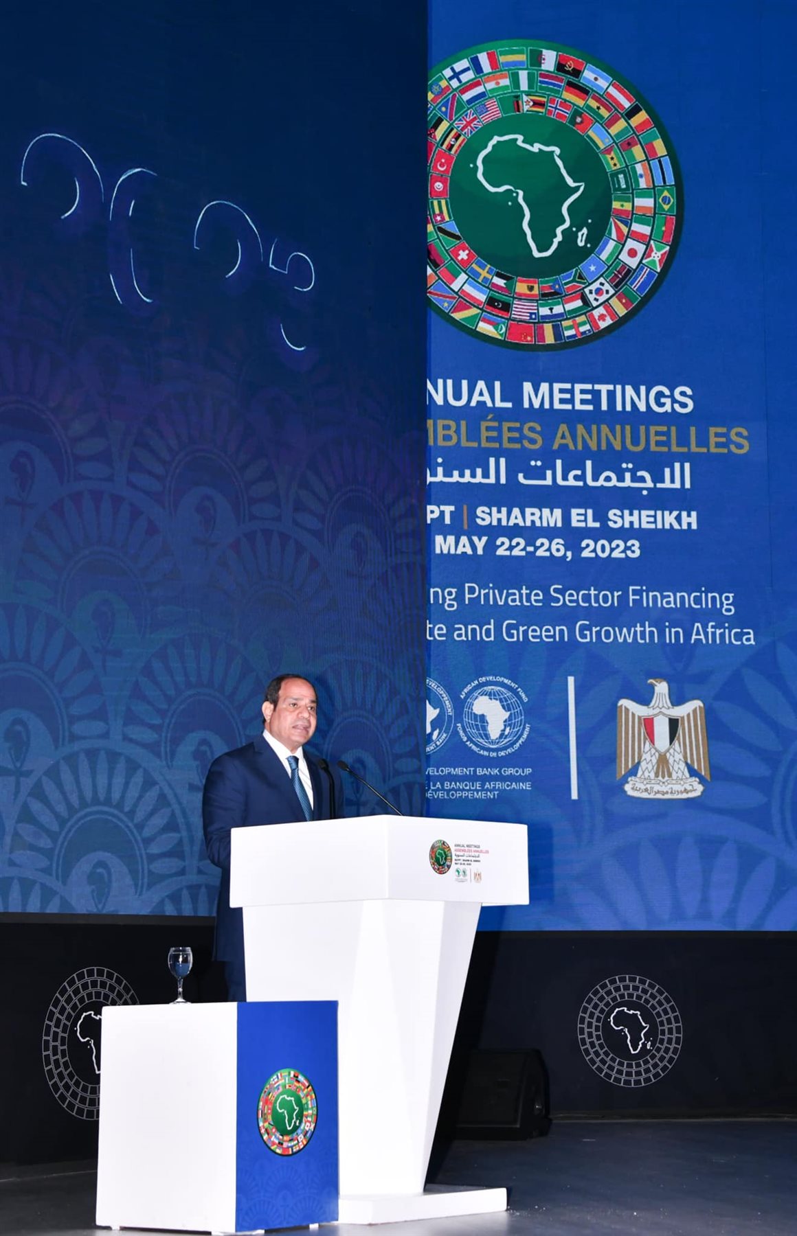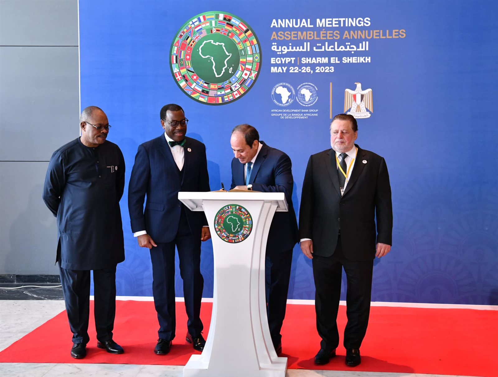وافتتح الرئيس عبد الفتاح السيسي اليوم الاجتماعات السنوية لبنك التنمية الأفريقي، التي تستضيفها مصر بمدينة شرم الشيخ، تحت شعار "تعبئة تمويل القطاع الخاص من أجل المناخ والنمو الأخضر في أفريقيا".