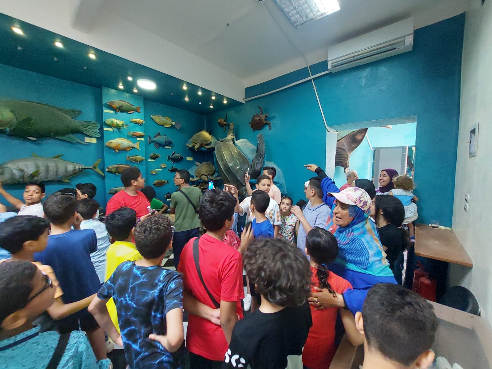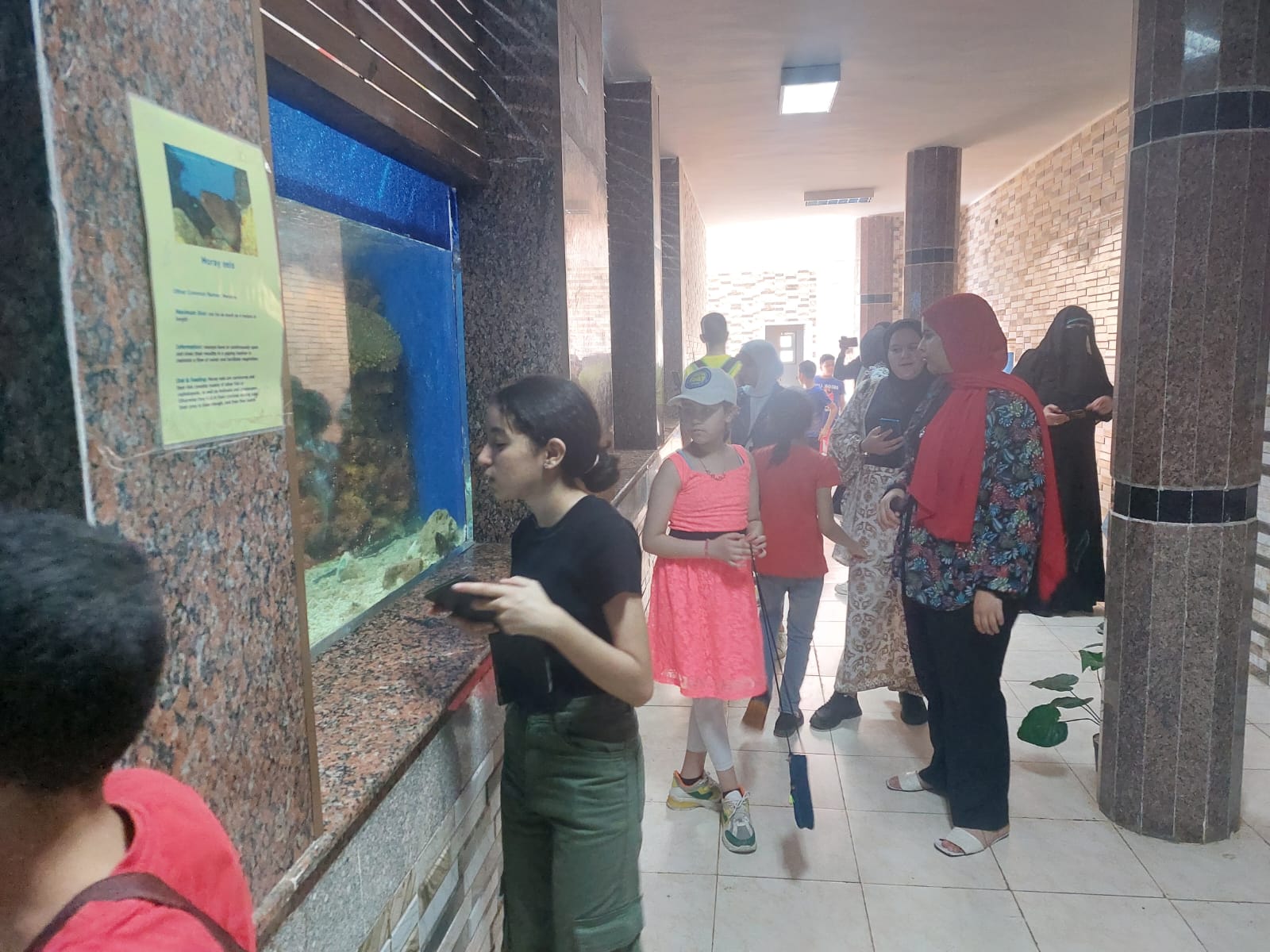 وخلال فاعليات الفوج العاشر المشارك به النشء من محافظتى كفر الشيخ وبنى سويف، نظمت زيارة للمعهد القومى لعلوم البحار والمصايد والذى يعد محاكاة طبيعية للحياة البحرية حيث تمكن المشاركين من رؤية ومراقبة المخلوقات البحرية من خلال الأحواض المختلفة، ثم توجهه المشاركين إلى منزل الدكتور حامد جوهر رئيس أول محطة بحرية للأحياء المائية على ساحل البحر الأحمر ومشاهدة أنواع الأسماك المختلفة بالبحر الأحمر وكذلك أنواع الطيور المهاجرة التى تهاجر لساحل البحر الأحمر كل عام وانتهت الجولة بالتعرف على المعهد والأبحاث العلمية التى تقام بالمعهد، كما يقوم المشاركين بممارسة الأنشطة الرياضية المختلفة بملعب المدينة الشبابية على شاطئ البحر، بالإضافة إلى جولة حرة بمدينة الغردقة وذلك للتعرف على أهم المعالم السياحية بها.