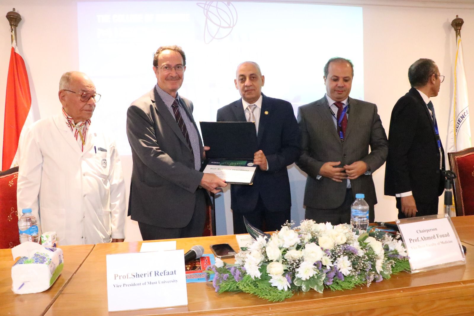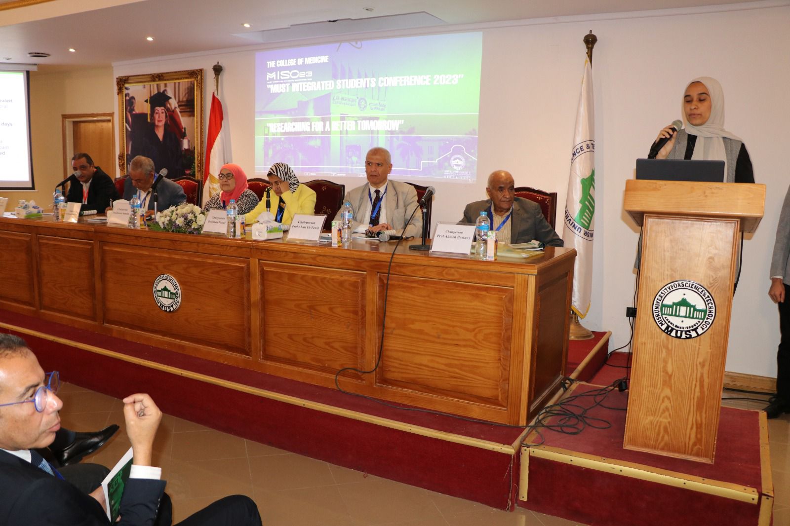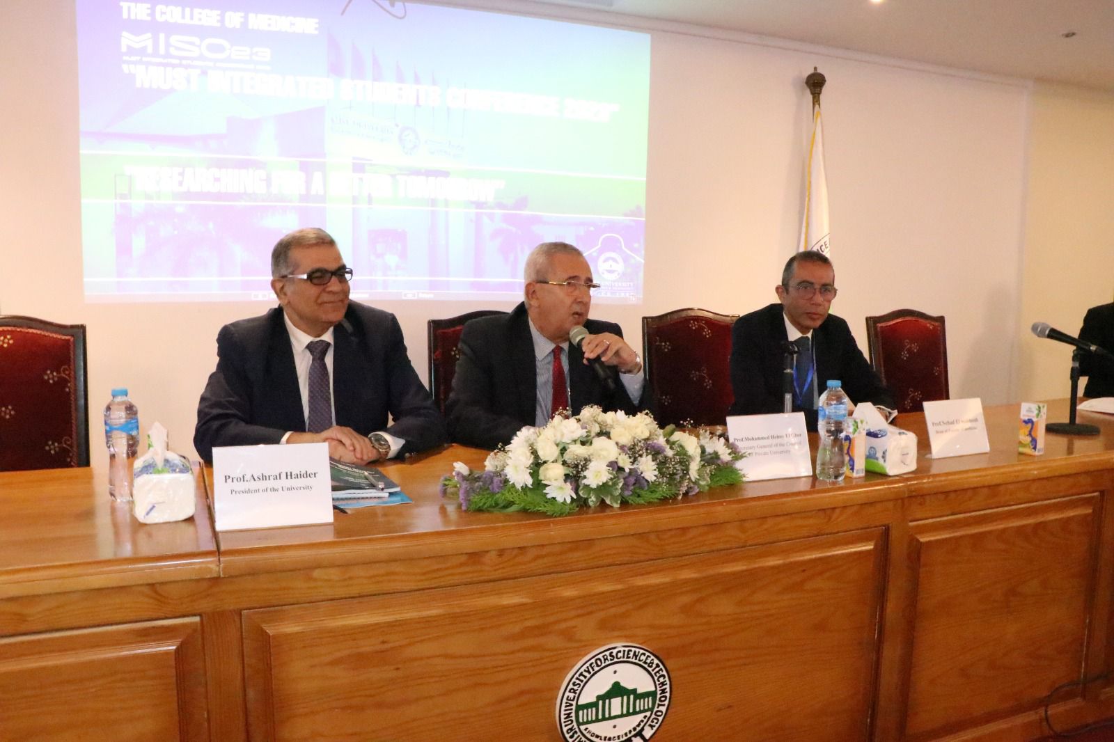 عقدت كلية الطب جامعة مصر للعلوم والتكنولوجيا المؤتمر البحثي الطلابى الأول للنظام التكاملى الحديث ( 5+2 ) MISC 23، تحت شعار "البحث العلمى من أجل غد أفضل"، وذلك برعاية خالد الطوخى رئيس مجلس أمناء جامعة مصر للعلوم والتكنولوجيا، ود. أشرف حيدر غالب القائم بأعمال رئيس الجامعة، وبحضور الدكتور محمد حلمي الغر أمين عام المجلس الأعلى للجامعات الخاصة والأهلية، والدكتور شريف رفعت نائب رئيس الجامعة لشئون التعليم والطلاب، وعميد كلية الطب البشري د. نهاد المحبوب ووكيل الكلية لشئون التعليم والطلاب د. نانسي زغلول ووكيل الكلية لخدمة المجتمع د. أحمد فؤاد، ورئيس المؤتمر الدكتور محمود طنطاوي.