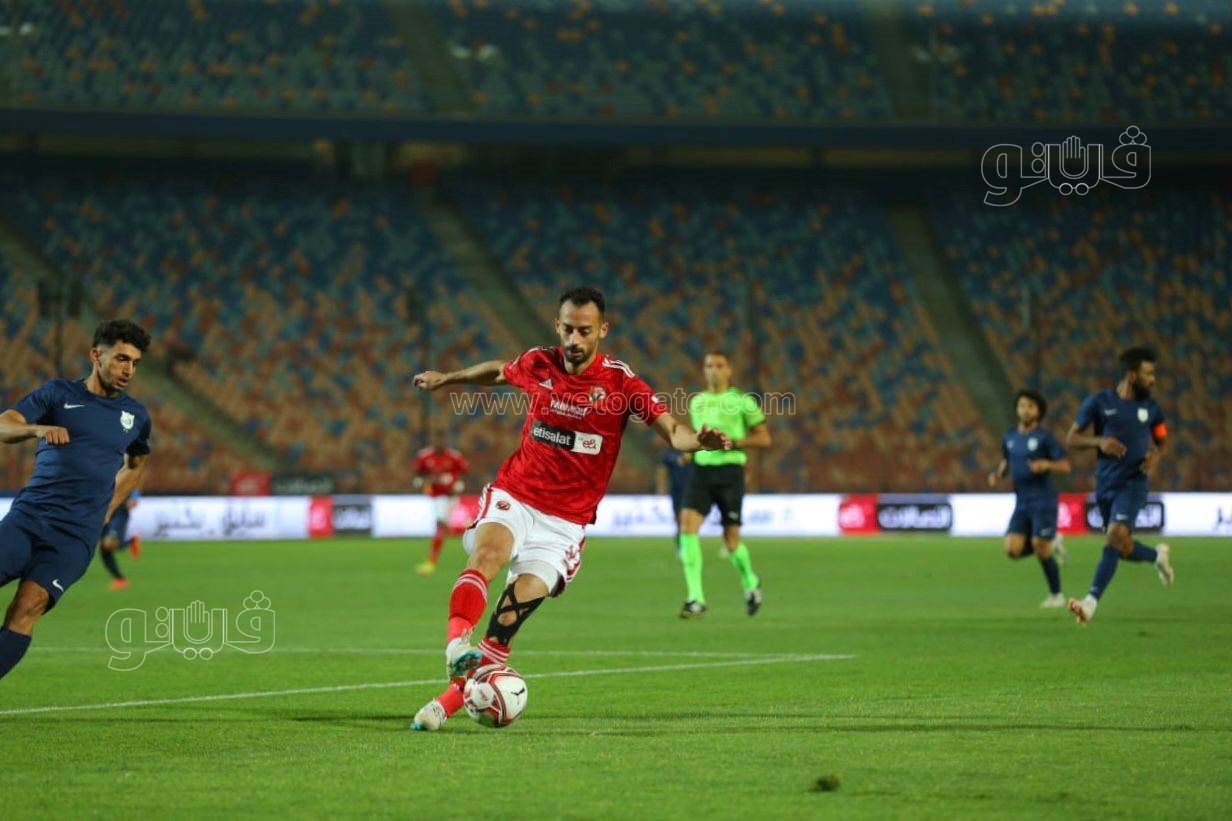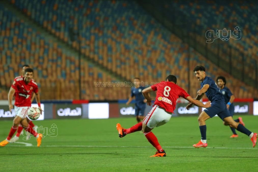 وفي الدقيقة 21، أهدر حمدي فتحي فرصة ذهبية بعد تبادل رائع للكرة مع علي معلول ومحمد شريف، ليدخل منطقة الجزاء ويسدد كرة قوية مرت فوق العارضة.