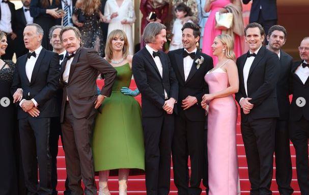 مهرجان كان، شهد العرض العالمي الأول لفيلم Asteroid City، حضور عدد كبير من نجوم هوليوود، على رأسهم الممثل الشهير توم هانكس وسكارليت جوهانسون، التي تألقت بفستان وردي اللون بسيط، وأنيق، أبرز جمالها.
