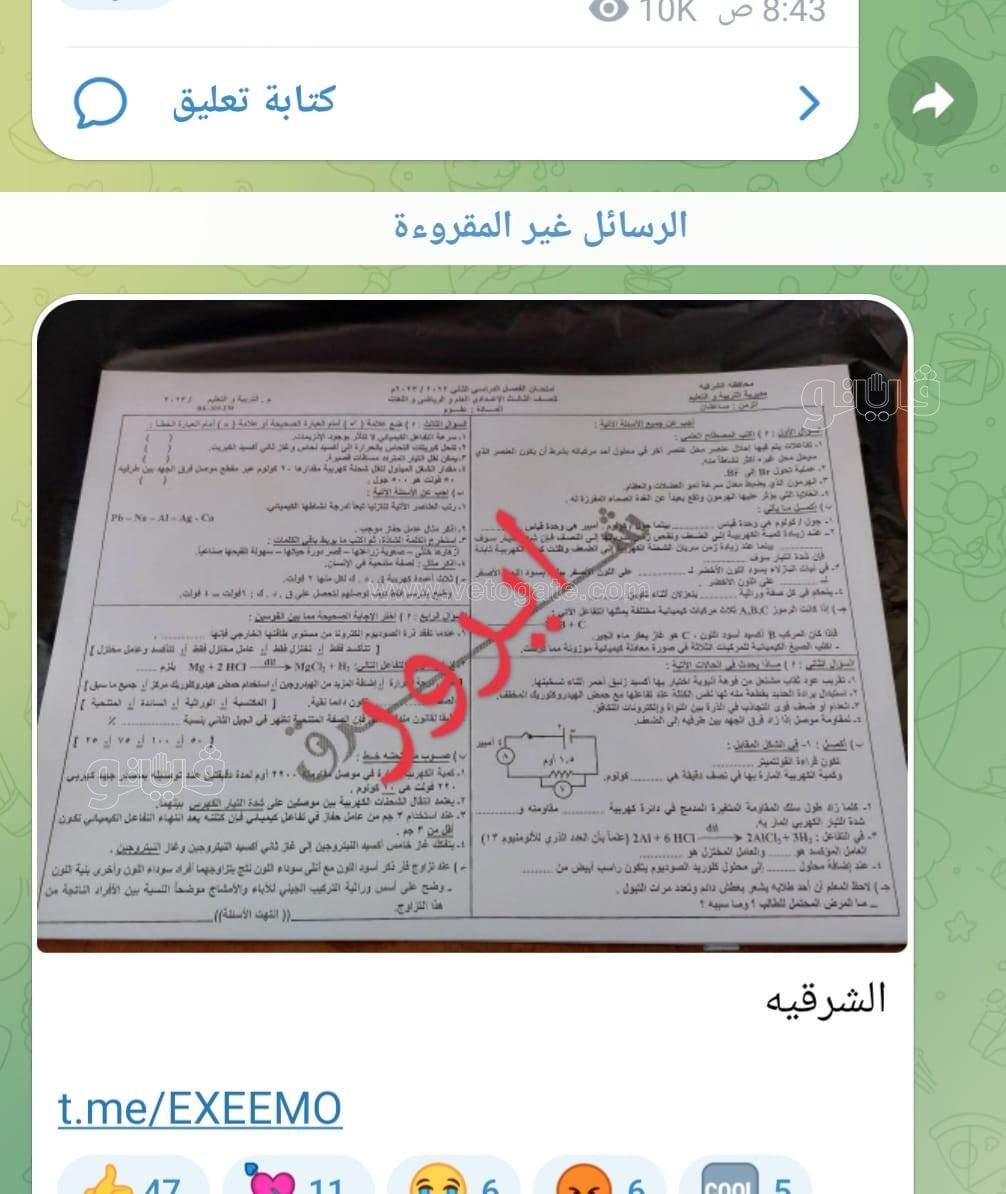 تسريب امتحان العلوم للشهادة الإعدادية، وتعليم الشرقية يحقق في الواقعة