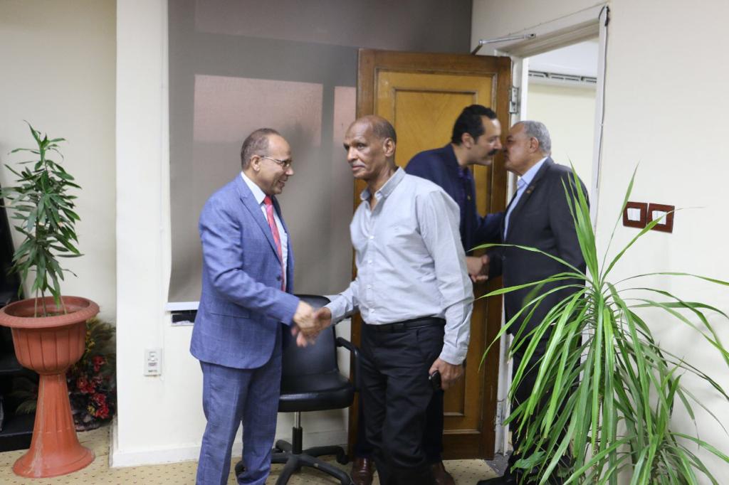 و استقبل الدكتور محمد عبد النعيم نائب رئيس الجامعة لشئون التعليم والطلاب، الدكتور عبد المنعم عمارة أثناء زيارته للجامعة.
