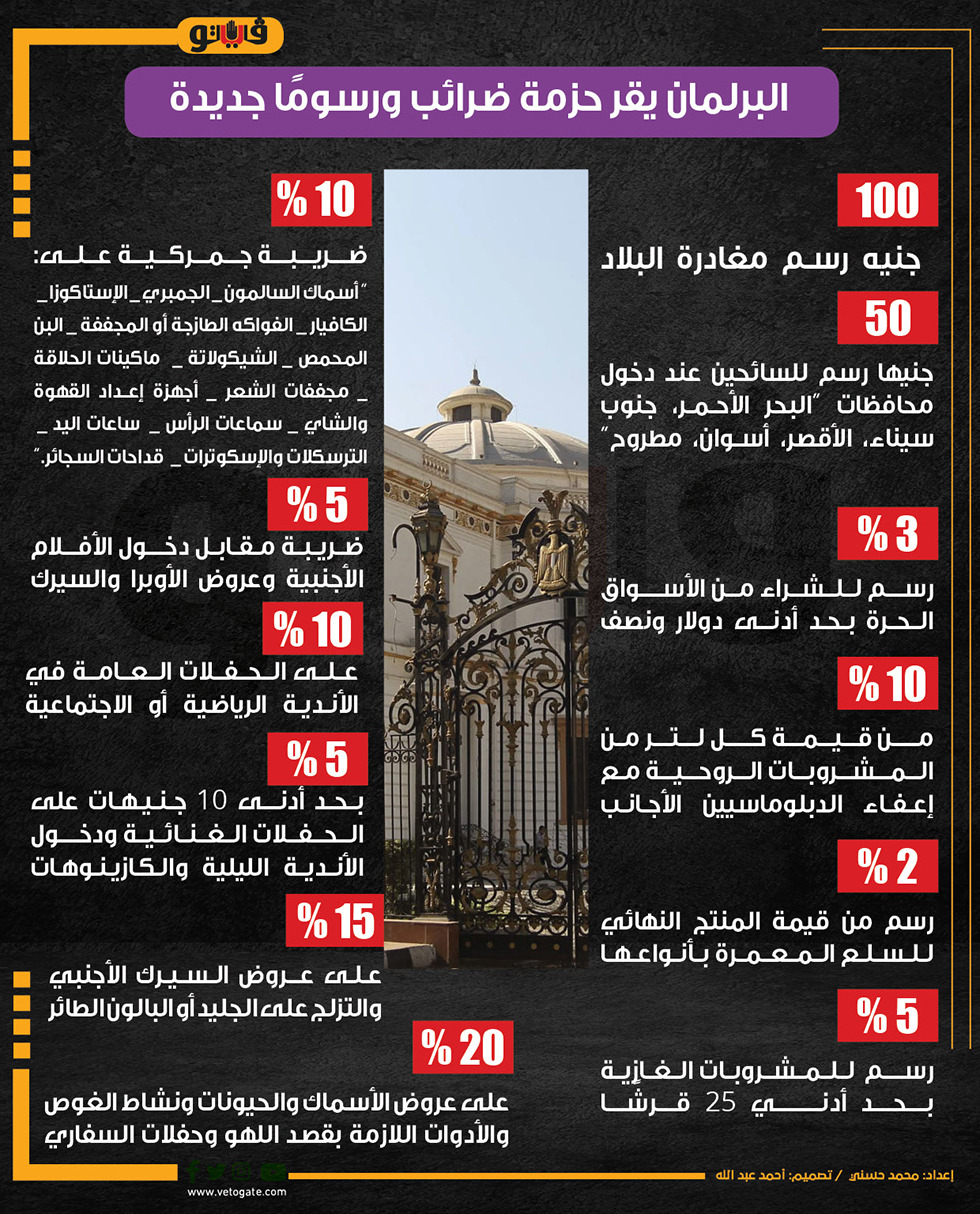 البرلمان يقر حزمة ضرائب ورسومًا جديدة (إنفوجراف) الأربعاء 24/مايو/2023 - 05:53 م 5/24/2023 5:53:25 PM محمد حسنى شارك طباعة 18 حجم الخط شارك طباعة