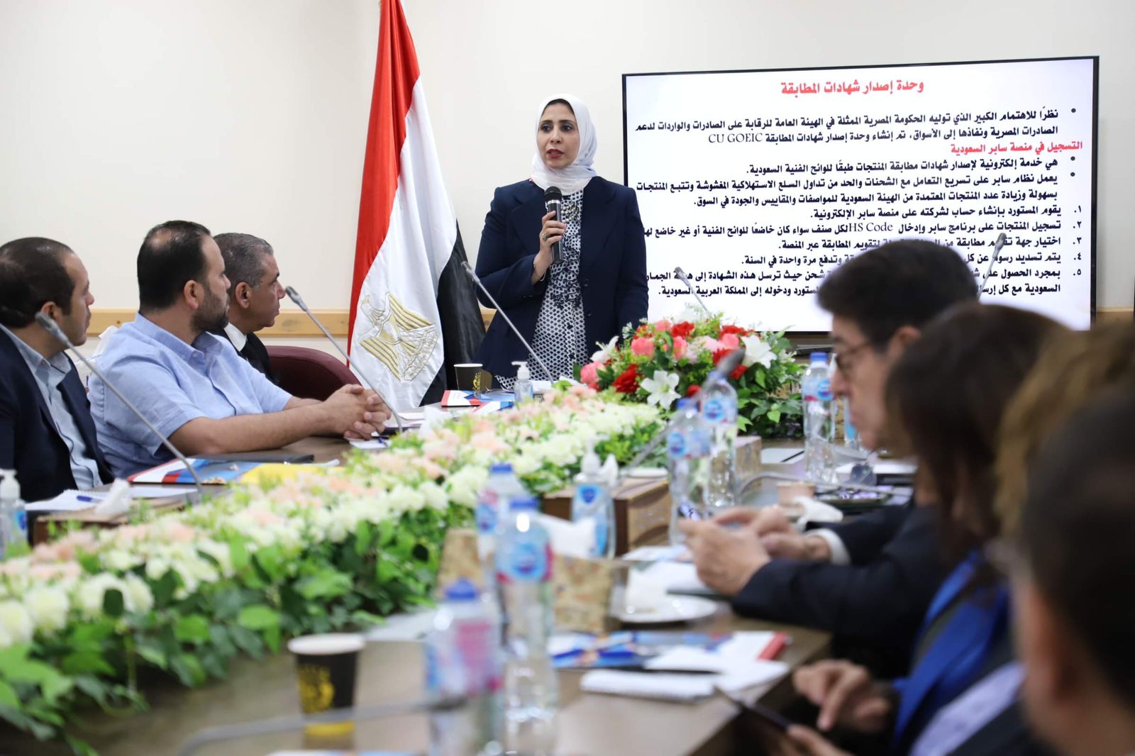 كما استعرضت الدكتورة: رشا النمكى المدير الفني لوحدة اصدار شهادات المطابقة للمنتجات الدور البارز الذي تقوم به الوحدة ومميزات التسجيل بواسطة وحدة إصدار شهادات المطابقة للمنتجات وكذلك اللوائح الفنية السعودية المعتمدة لدى وحدة اصدار شهادات المطابقة بالهيئة العامة للرقابة على الصادرات والواردات والخاصة بصناعات التغليف.