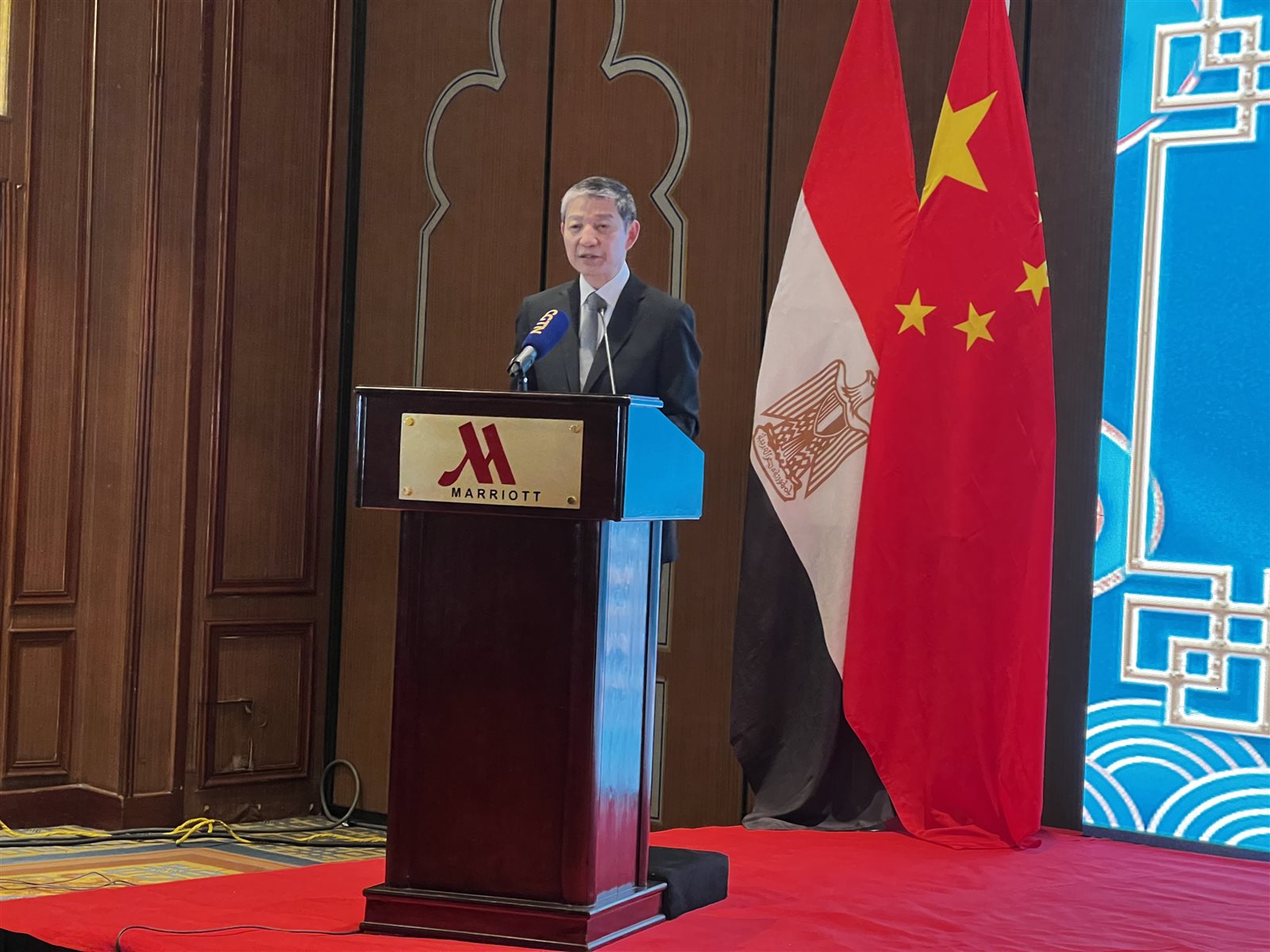 بدأ السفير الصينى فى القاهرة كلمته خلال حفل الصداقة بين السفارة ووسائل الإعلام الصينية والمصرية ب بتحية الإسلام "السلام عليكم".