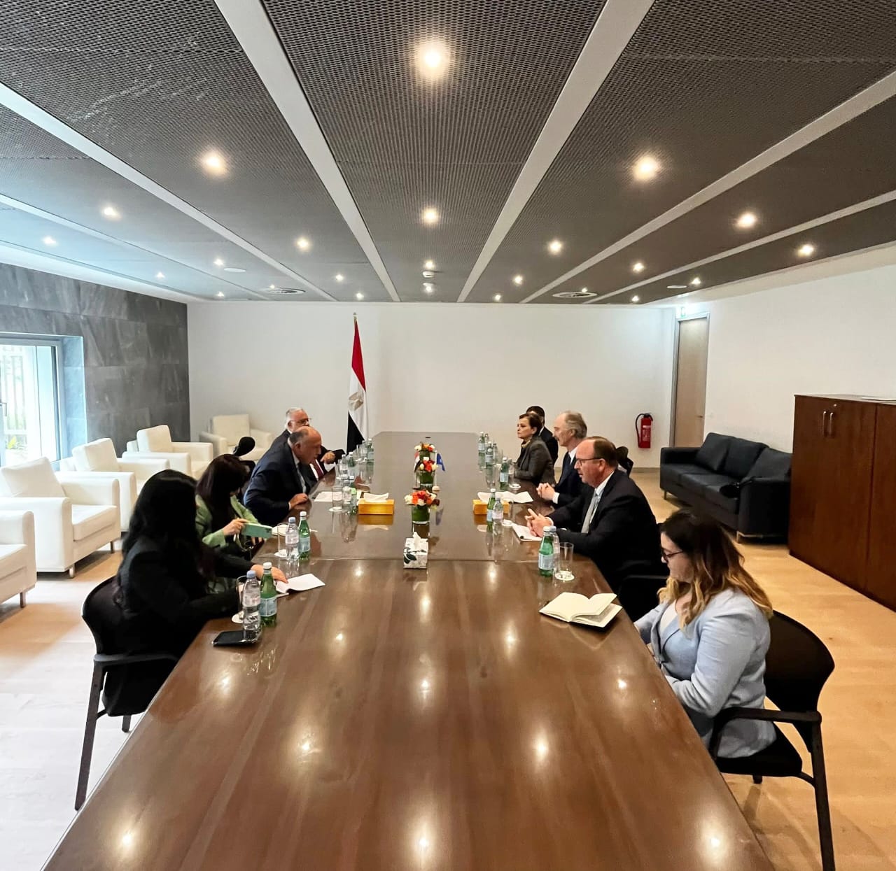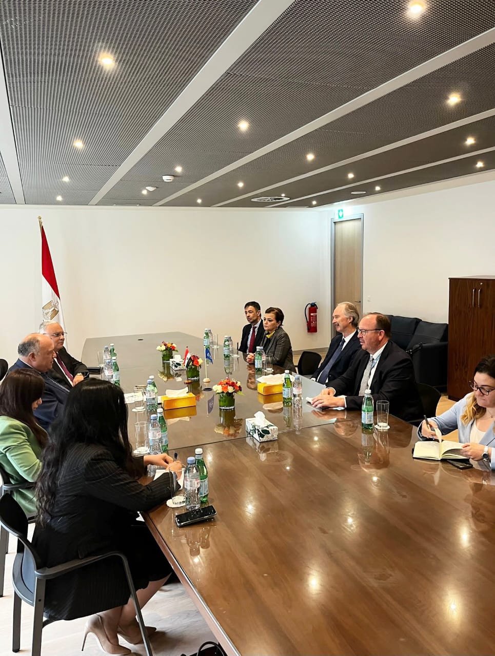 التقى سامح شكري وزير الخارجية اليوم، مع مبعوث الأمم المتحدة الخاص إلى سوريا "جير بيدرسون" في جنيف.