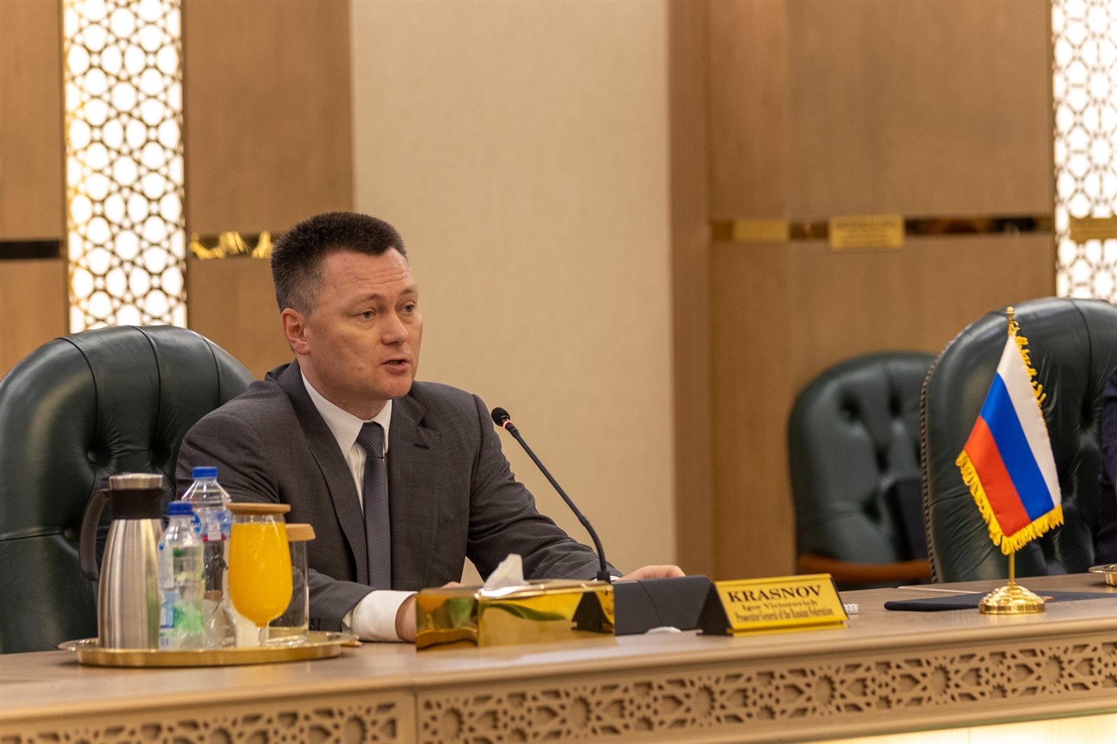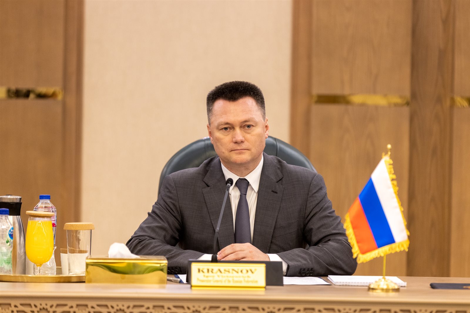 ومن جانبه أعرب إيغور كراسنوف النائب العام لروسيا الاتحادية في بداية كلمته عن سعادته بلقاء نظيره المصري على أرض مصر المضيافة متوجهًا له بالشكر والترحيب لحفاوة الاستقبال وحسن التنظيم، مؤكدًا ملاحظته التفاعل البنَّاء بين النيابتين، حيث قد عُقدت العديد من الفعاليات المشتركة في موسكو والقاهرة منذ توقيع مذكرة التعاون القضائي في سانت بطرسبرغ العام الماضي، حيث تبادل أعضاء النيابة في الجانبين خبراتهم وآراءهم في قضايا مكافحة الجريمة السيبرانية، والتداول غير المشروع للعملات المشفرة، ومكافحة الجرائم الإرهابية.