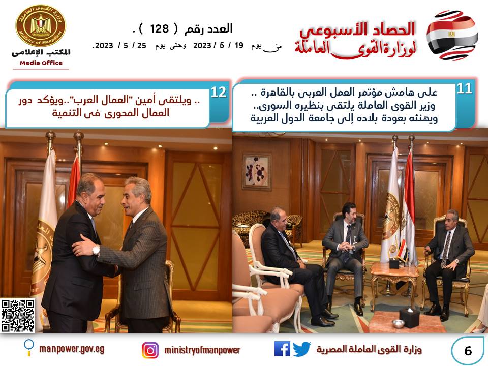 كما شهد الأسبوع أيضا اجتماعا لصندوق إعانات الطوارئ للعمال.. وعودة مستحقات عمال مصريين في الأردن...إلى التفاصيل..