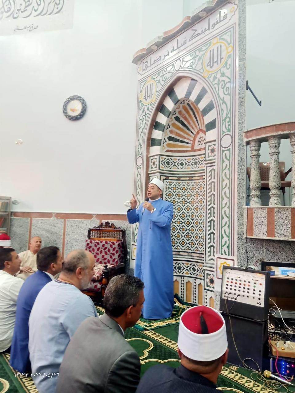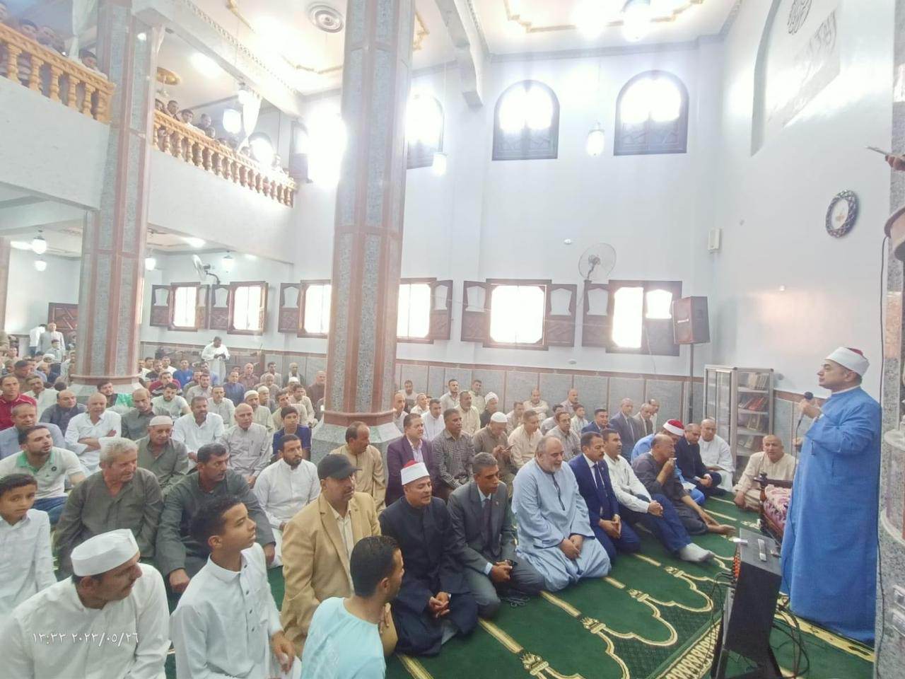 كما أوضح وكيل وزارة الأوقاف أنه قام بإلقاء خطبة الجمعة به، والتى تناولت موضوع فضل الصلاة والسلام على خير الأنام ، حيث أكد في الخطبة على أن الصلاة والسلام على سيدنا رسول الله لا يوفق إليها إلا كل تقى ولا يشاغب عليها ويتنكر لها إلا كل شقى، وهى مراد كل طالب وقبلة كل راجى وراحة كل داعى وهى ملاذ كل خائف وهى الفرج لكل مهموم.