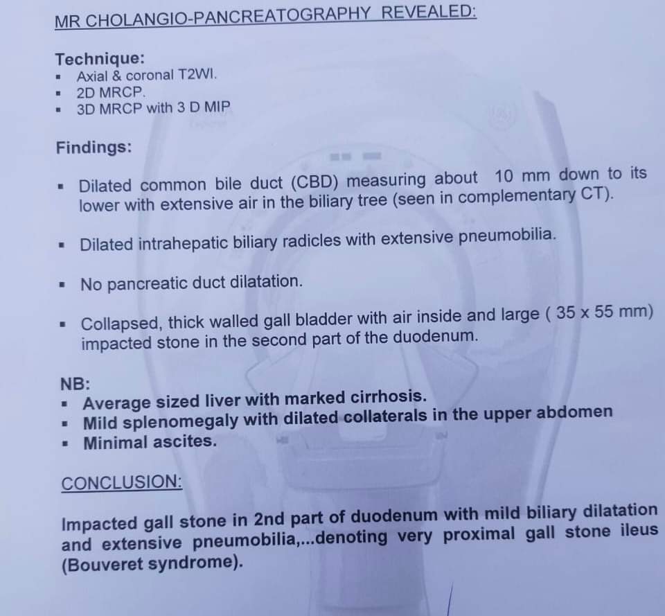 شهدت احدي المستشفيات بالدقهلية استخراج حصوة من الاثنى عشر حجمها ٥.٥ سم كانت بالمرارة من ٤٧ عاما وسببت انسدادا كاملا بالاثنى عشرbouvert’s syndrome.