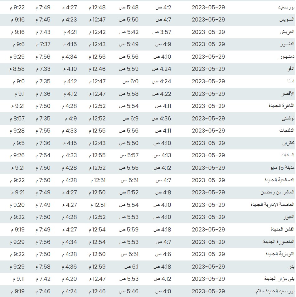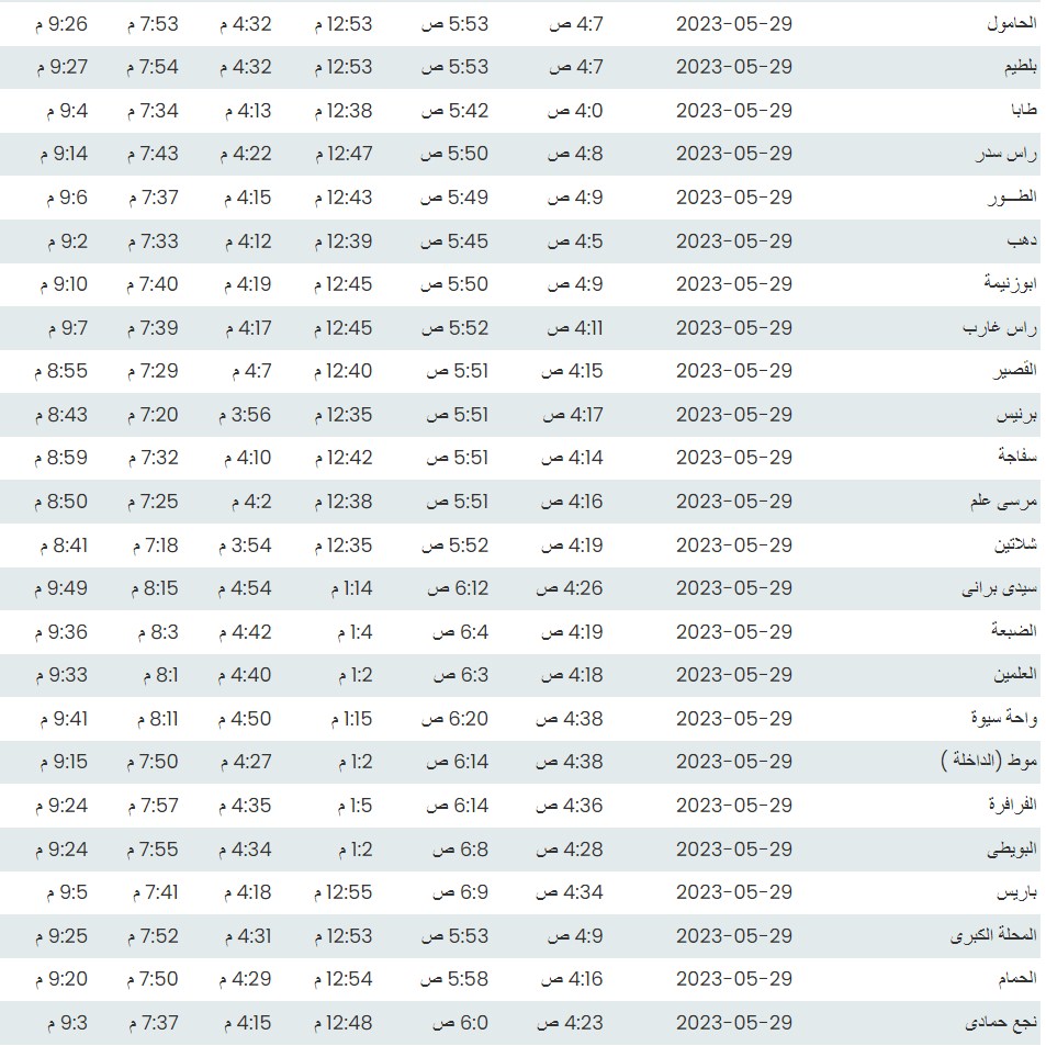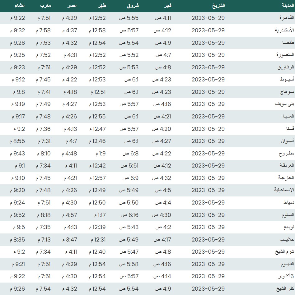 مواقيت الصلاة اليوم بتوقيت القاهرة