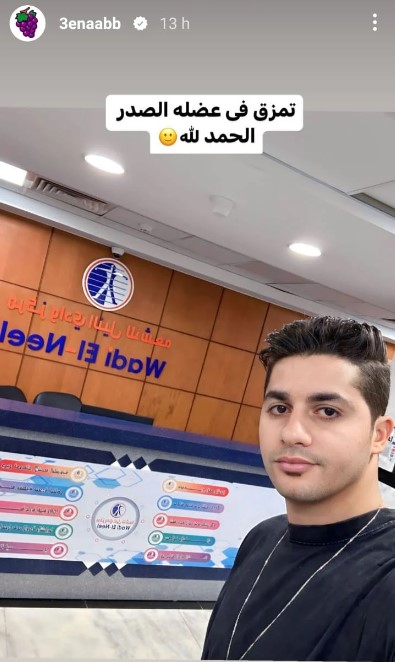 في هذا السياق، نشر عنبة ستوري عبر حسابه الرسمي على إنستجرام من داخل أحد المراكز الطبية، وعلق عليها قائلًا: تمزق في عضلة الصدر.. الحمد لله.