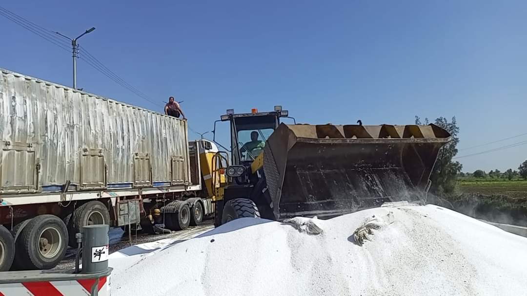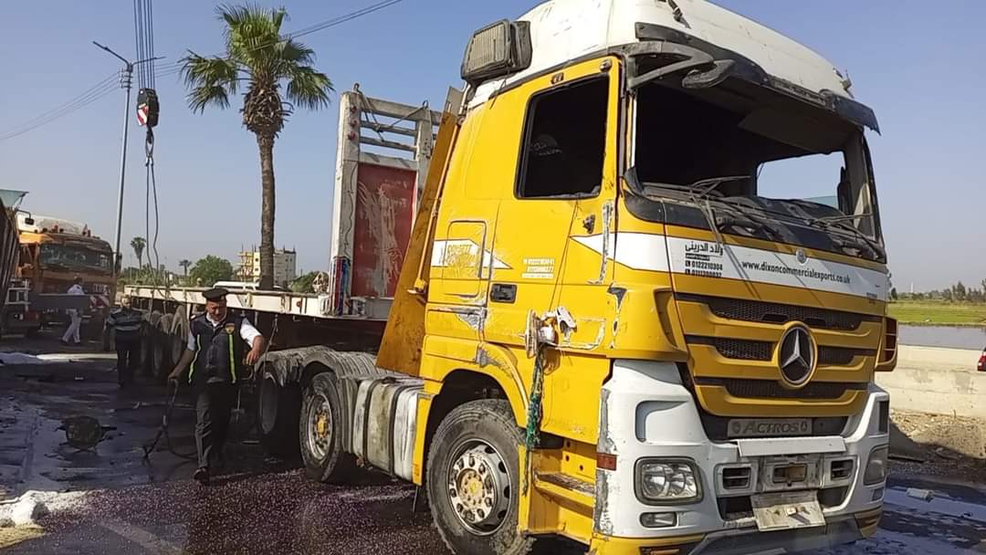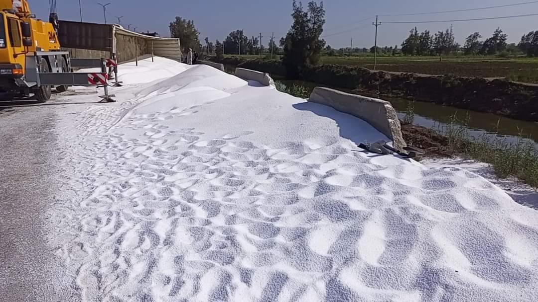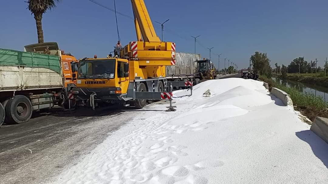 إصابة سائقين في انقلاب سيارة نقل محملة بأسمدة كيماوية بطريق رافد المنصورة