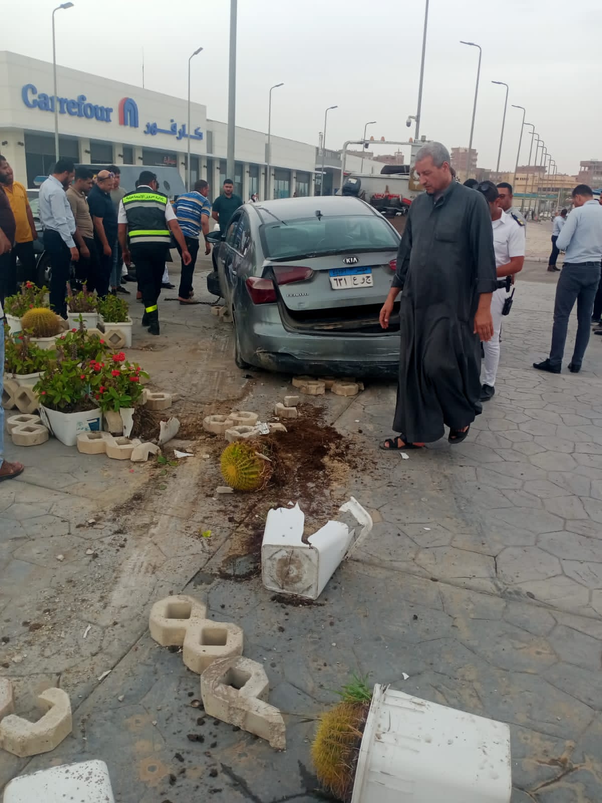 سيارة تصطدم بكشك وتصيب حارسه في الإسماعيلية (صور)