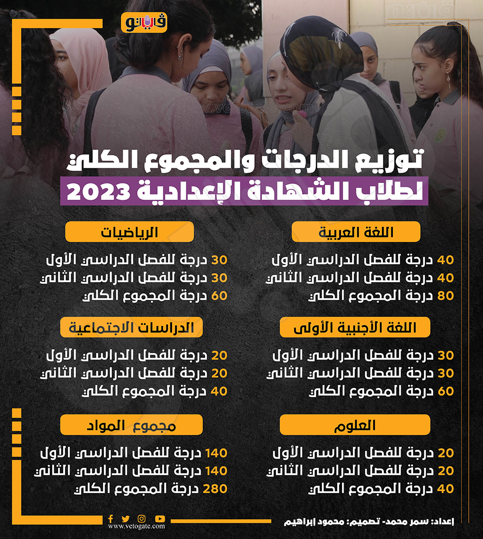 فيتو تنشر توزيع درجات الشهادة الإعدادية 2023