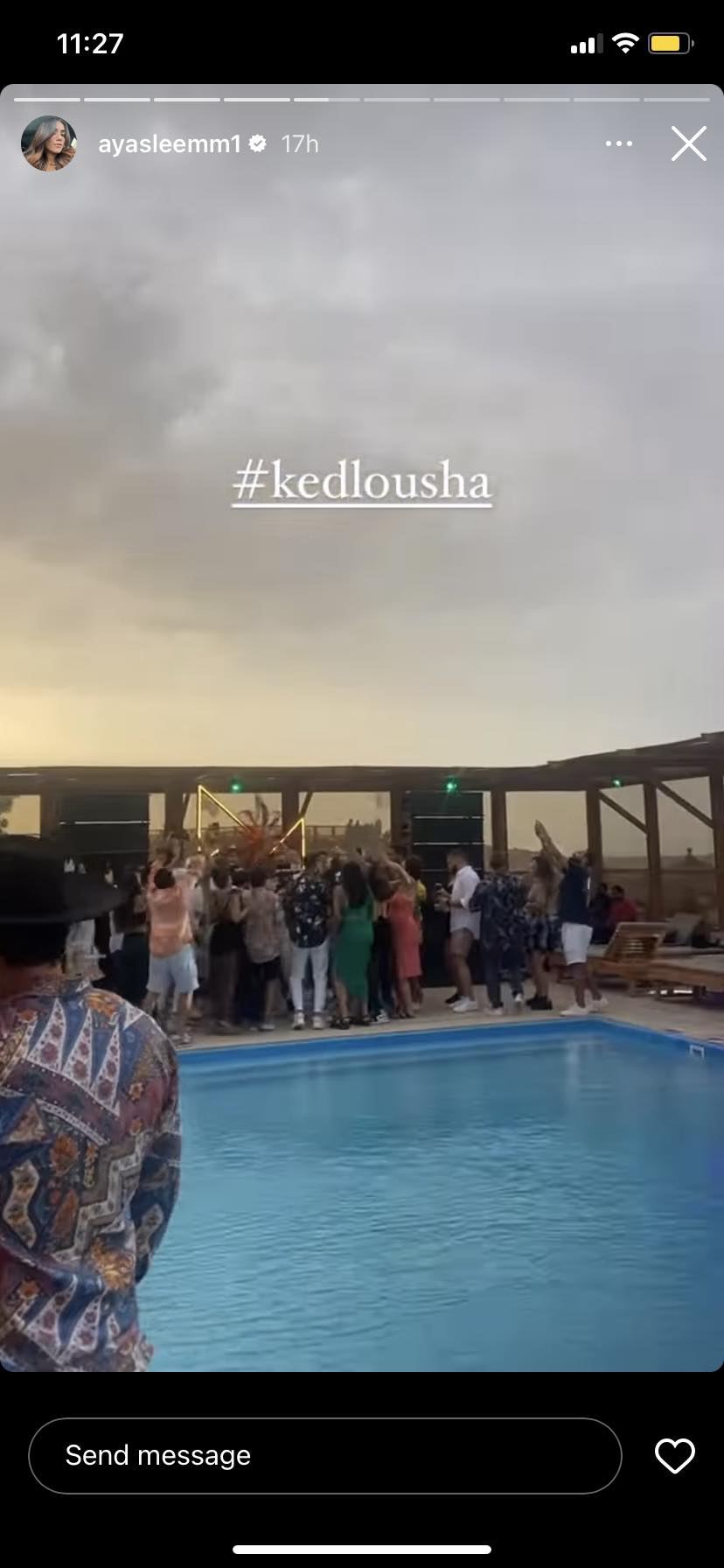 و ظهر يوسف ماجد الكدواني وهو يرقص وسط أصدقائه في الجونه على “حمام السباحة" احتفالا بزفافه.