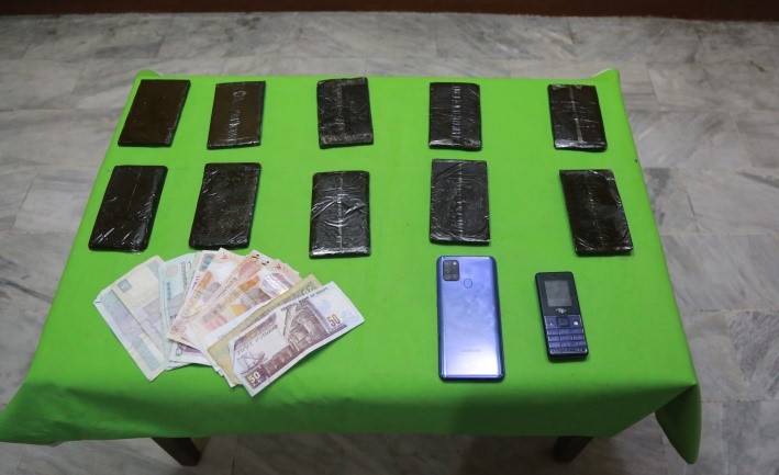 ضبط (شخصين "لهما معلومات جنائية").. حال إستقلالهما دراجة نارية "بدون لوحات معدنية" بدائرة مركز شرطة مشتول السوق.. وبحوزتهما ( كمية من مخدر الحشيش وزنت 1,200 كيلو جرام - مبلغ مالى – 2 هاتف محمول ).
