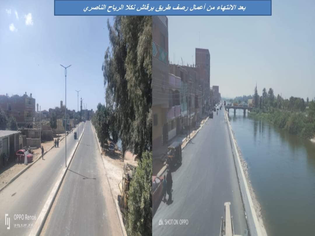 وتابع اللواء أحمد راشد محافظ الجيزة أعمال رصف طريق الرياح الناصري نكلا نطاق الوحدة المحلية ببرقاش والجاري تطويره وتوسعته بمركز ومدينة منشأة القناطر لتسهيل حركة سير المواطنين.