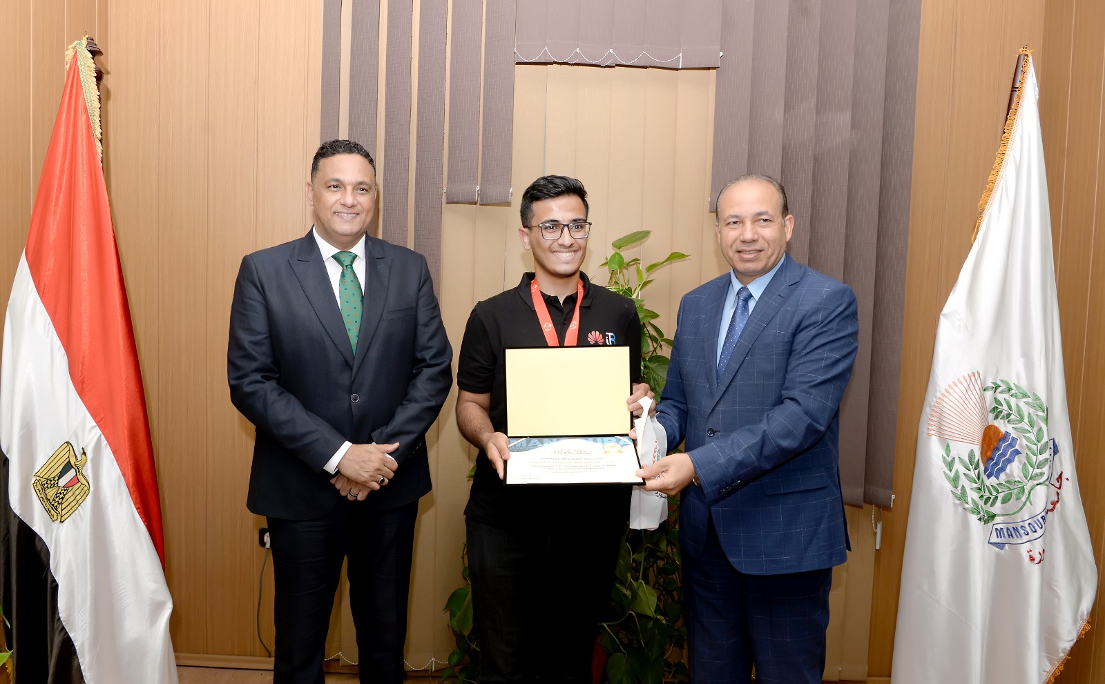 تم التكريم بحضور الدكتور محمد عبد العظيم عميد كلية الهندسة، الدكتور مجدى زكريا عميد كلية الحاسبات والمعلومات، الأستاذ الدكتور عبير توكل مدير فرع اكاديمية هواوي بكلية الهندسة جامعة المنصورة