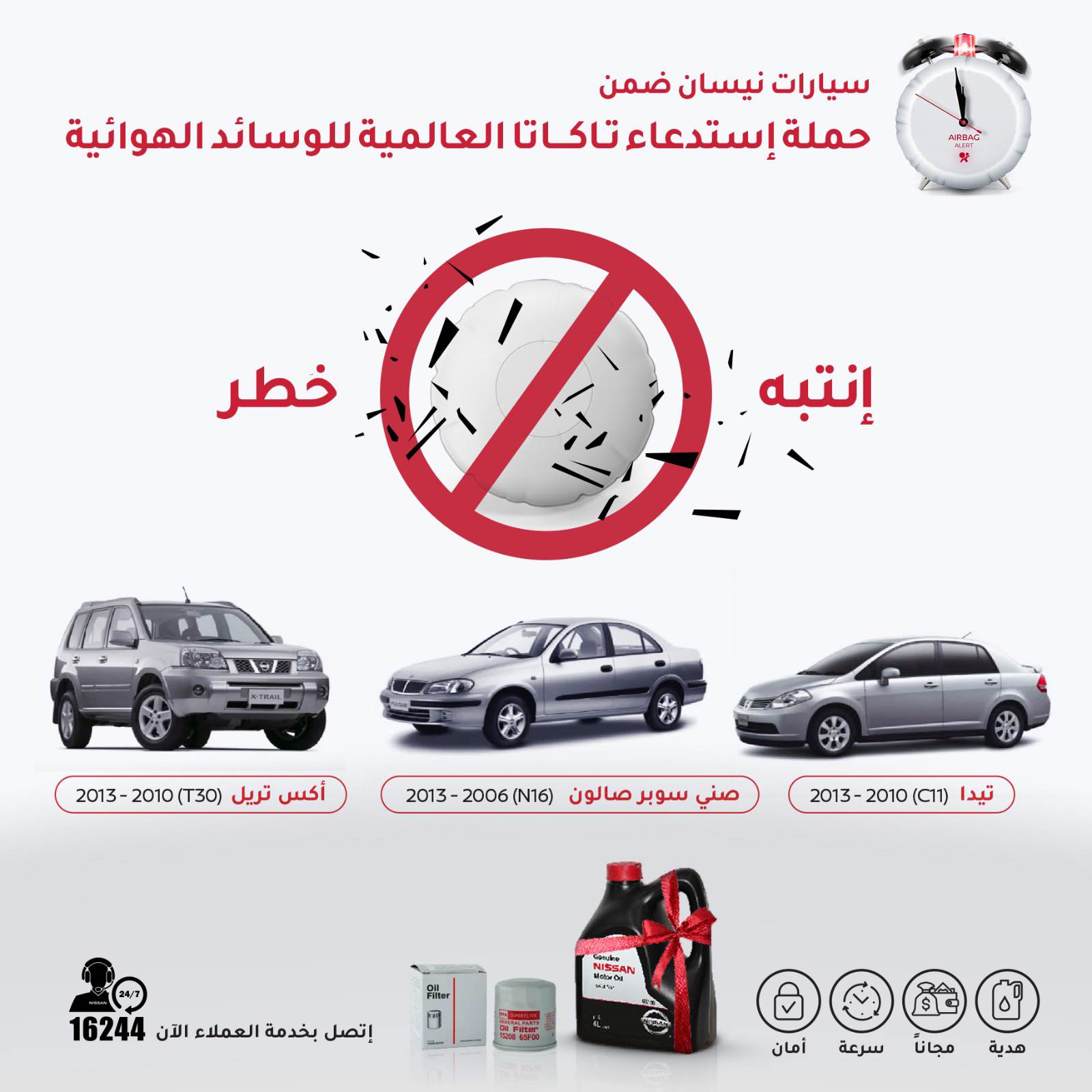 أصدر جهاز حماية المستهلك بيانا باستكمال حملة الاستدعاء السابقة لبعض سيارات نيسان من موديلات تيدا (C11)من 2010 -2013 وموديلات صني سوبر صالون (N16) من 2006 - 2013 وموديلات أكس تريل (T30) من 2010 – 2013.-شركة نيسان موتورز ايجيبت.