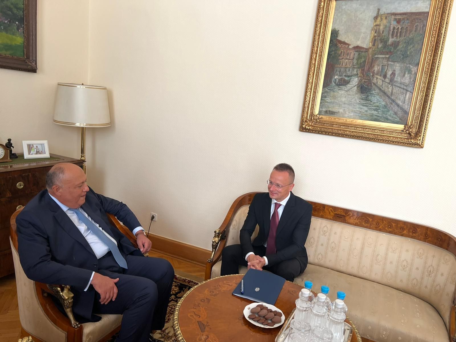 ومن جانبه، أعرب وزير الخارجية والتجارة المجري عن التشرف بزيارة وزير الخارجية والتي تتزامن مع الاحتفال بمرور 95 عامًا على العلاقات الدبلوماسية بين مصر والمجر. كما ثمن الوزير المجري عاليًا موقف مصر في التعامل مع قضية الهجرة غير الشرعية، لاسيما مع احتدام الأزمة الحالية التي يشهدها السودان، داعيًا الاتحاد الأوروبي إلى زيادة دعم مصر للتعامل مع تبعات تلك الأزمة. كما تناول الوزير المجري التعاون المطرد بين مصر والمجر فى العديد من المجالات.