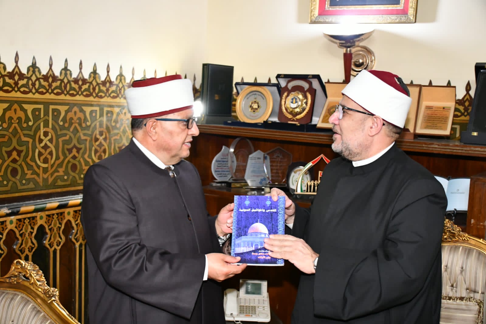 وأهدى وزير الأوقاف الشيخ حاتم محمد البكري وزير الأوقاف والشئون الدينية الفلسطيني نسخة من موسوعة الثقافة الإسلامية وعددًا من مطبوعات المجلس الأعلى للشئون الإسلامية ومن أهمها كتاب: (القدس والمواثيق الدولية)، وكتاب: (حماية البيئة بين المسئولية الشرعية والإنسانية)، وكتاب: (العملات الافتراضية المشفرة)، وكتاب: (الاجتهاد ضرورة العصر)، وكتاب (التسامح منهج حياة)، وهو ما أشاد به وزير الأوقاف والشئون الدينية الفلسطيني إشادة كبيرة، كما أشاد بالتاريخ العريق لوزارة الأوقاف المصرية خلال إطلاعه على مسيرتها التاريخية.