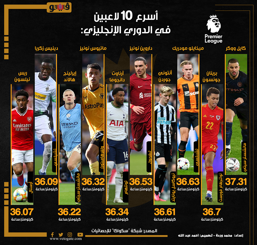 أسرع 10 لاعبين في الدوري الإنجليزي (إنفوجراف)