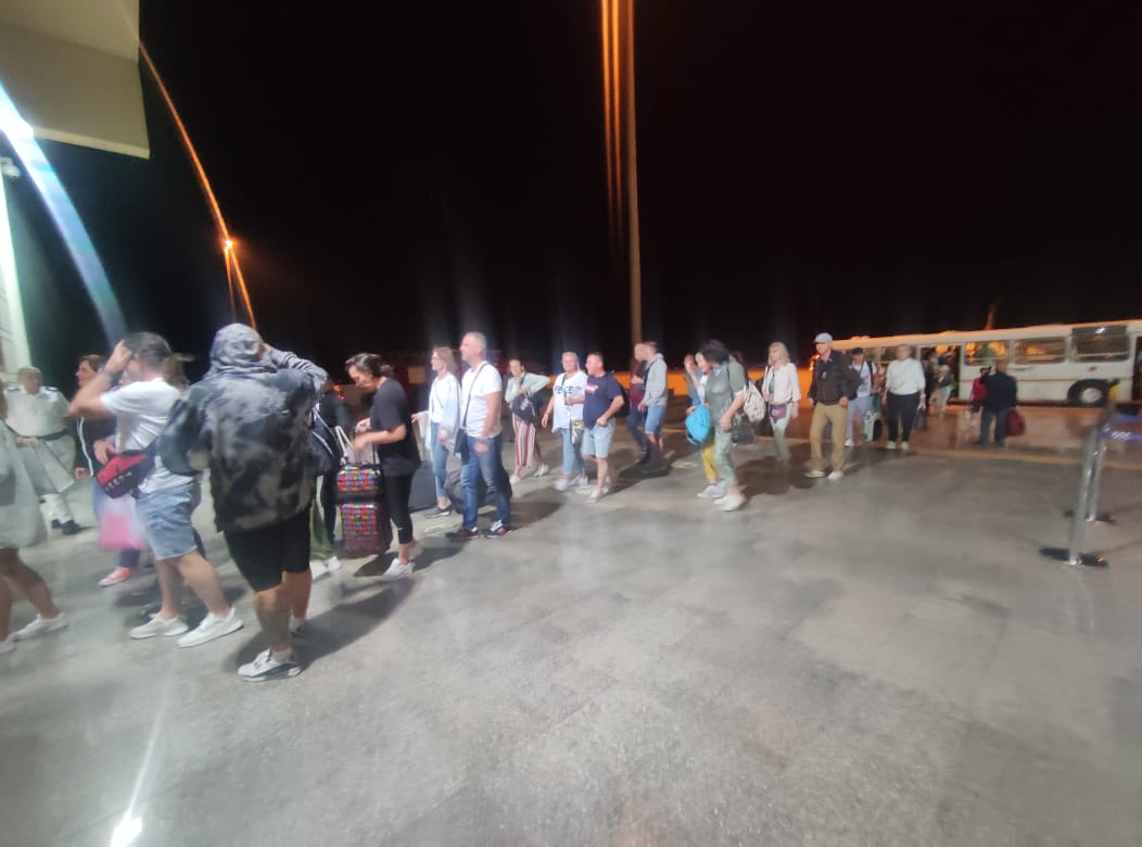 و قد قام فريق المطار بإستقبال ركاب الطائرة البالغ عددهم ١٨٨ راكبا ومساعدتهم على سرعة إنهاء إجراءات الوصول وتم الترحيب بالطائرة بتقليد Water Salute.