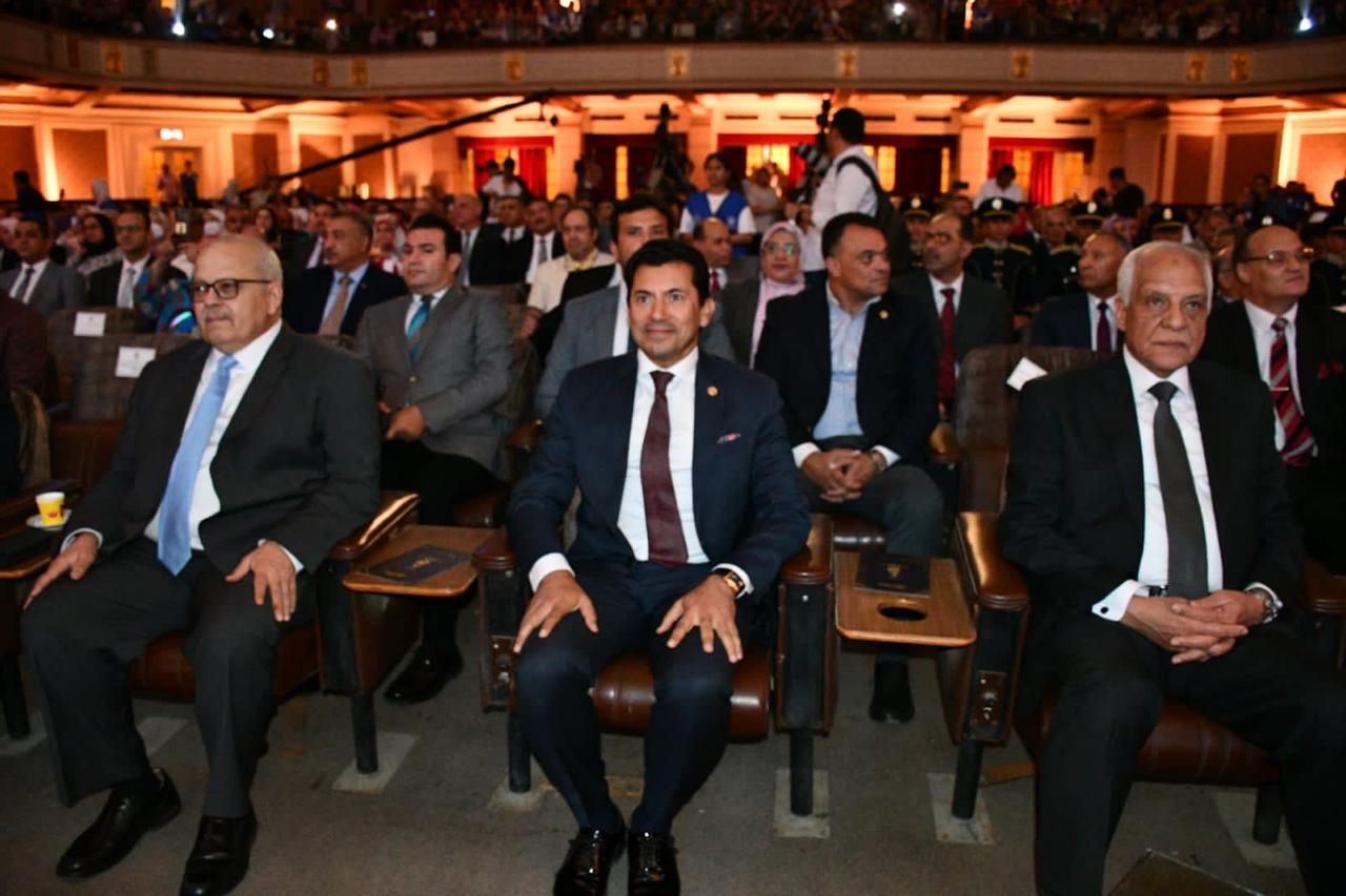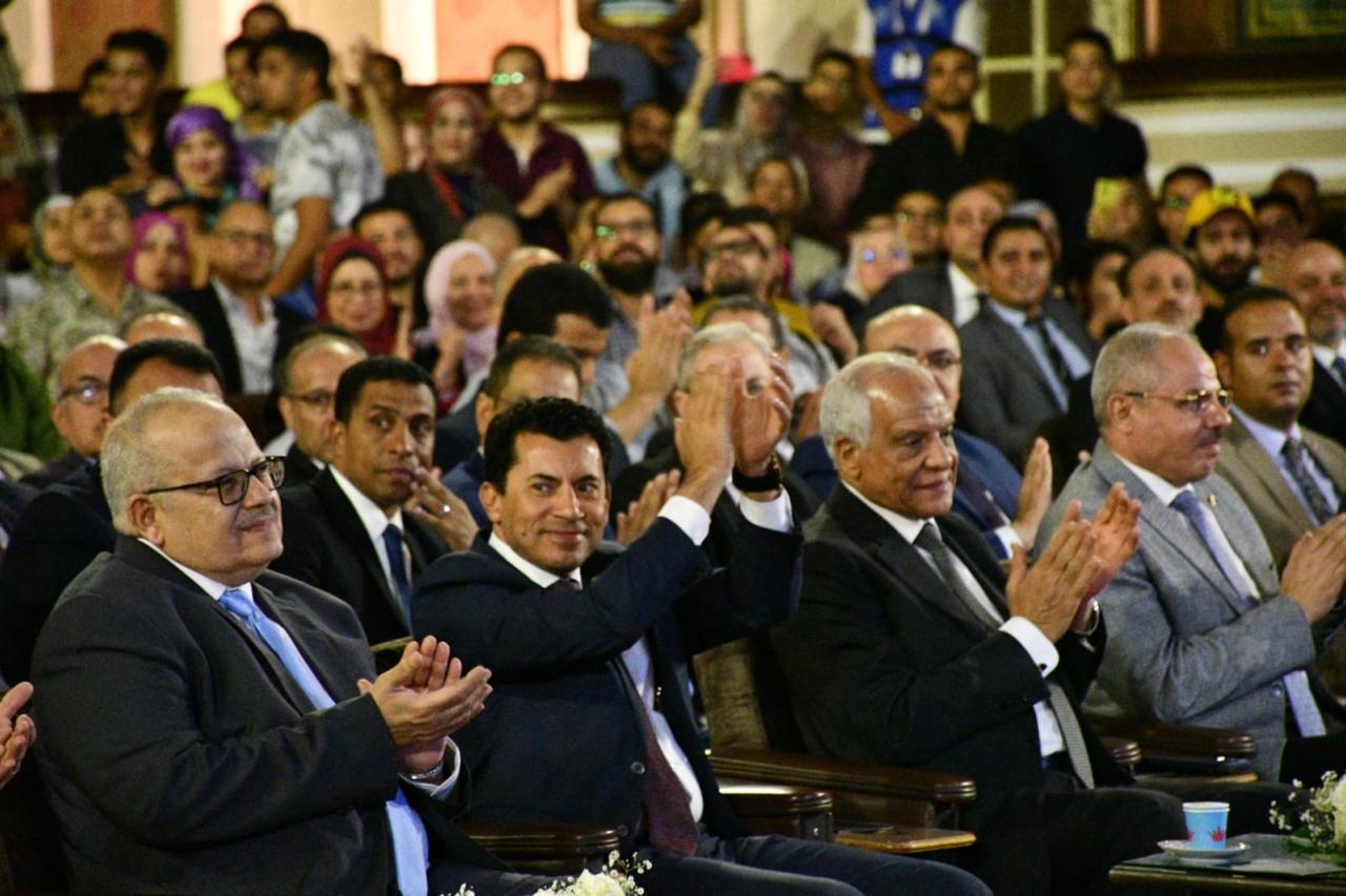 حضر الحفل الدكتور محمود حسين رئيس لجنة الشباب والرياضة بمجلس النواب، والدكتور محمد عثمان الخشت رئيس جامعة القاهرة، اللواء أحمد راشد محافظ الجيزة، الدكتور طارق رحمي محافظ الغربية، عدد من رؤساء الجامعات، وكوكبة من الشخصيات العامة والمفكرين والفنانين، وحشد كبير من الإعلاميين.