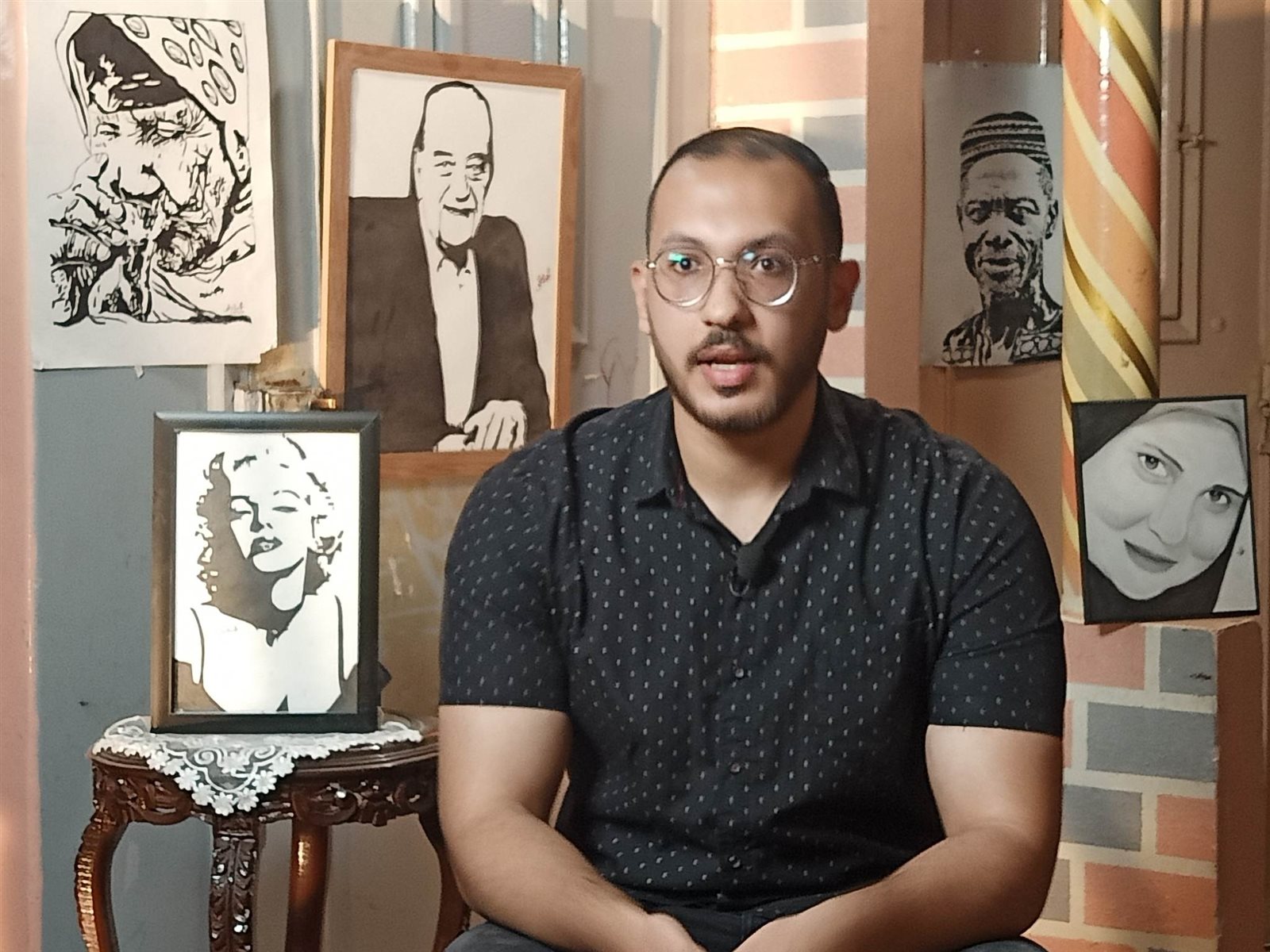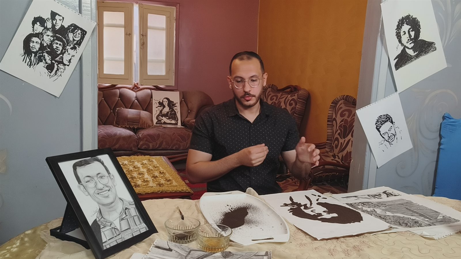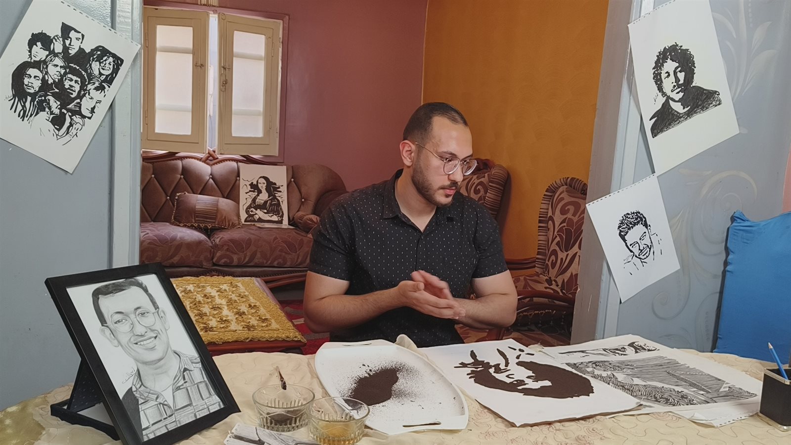 حكاية أحمد الشافعي طالب حقوق عاشق للرسم بالحبر والعسل والشاي ويحلم بالعالمية (صور)