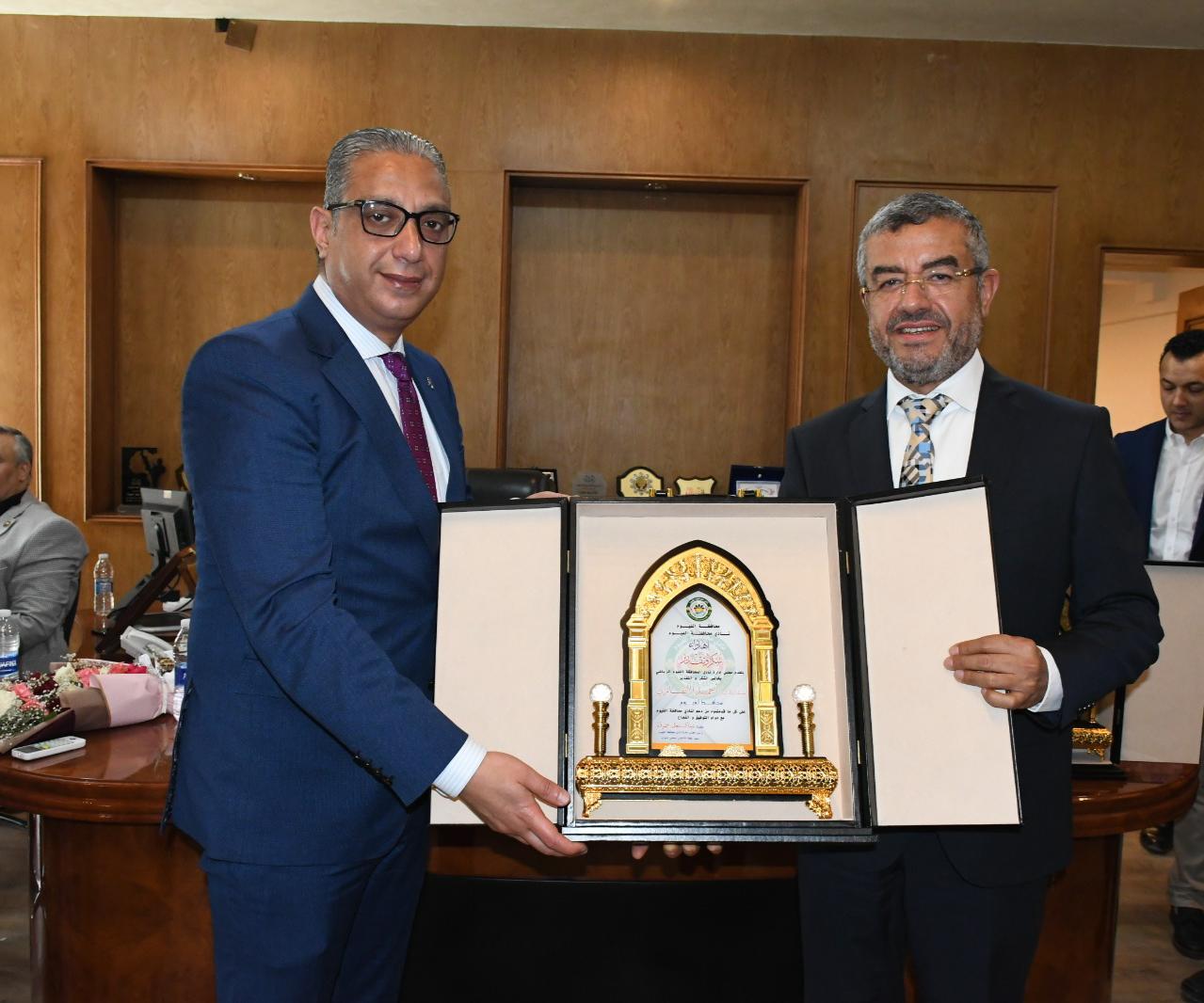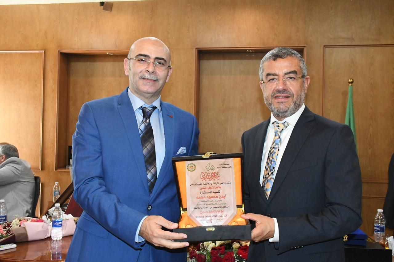 وعلى هامش الافتتاح، سلم رئيس لجنة الإسكان بمجلس النواب، رئيس مجلس نادى محافظة الفيوم، درع النادي لمحافظ الفيوم ونائبه، تقديرًا لدورهما فى مساندة النادى والمشاركة بكافة فعالياته، كما سلم درعين آخرين لمساعدي وزير العدل، بجانب تسليم دروع لعددٍ من المستشارين.