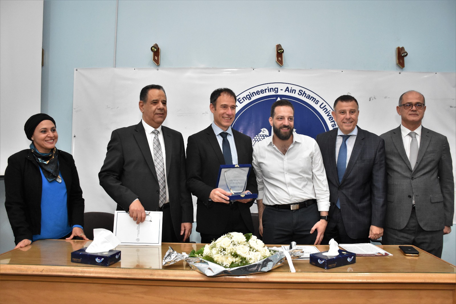 بحضور أيمن صالح نائب رئيس الجامعة لشئون الدراسات العليا والبحوث، ضياء خليل المشرف العام على مركز الابتكار وريادة الأعمال، أكرم فاروق وكيل الكلية لشئون خدمة المجتمع وتنمية البيئة، غادة بسيوني أستاذ مادة الكيمياء بكلية الهندسة جامعة عين شمس، موريتز ريدا من جامعة اكسفورد تامر النادي الأستاذ بقسم التصميم وهندسة الإنتاج ولفيف من أعضاء هيئة التدريس.