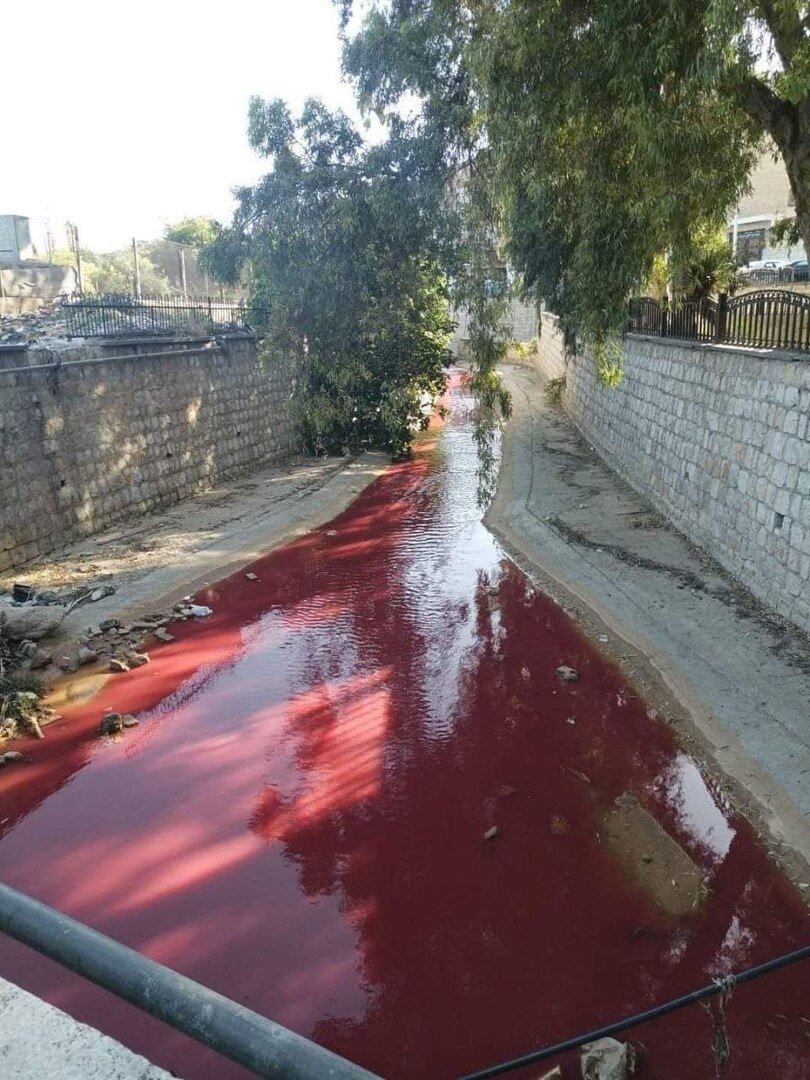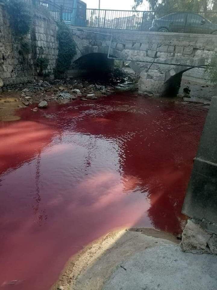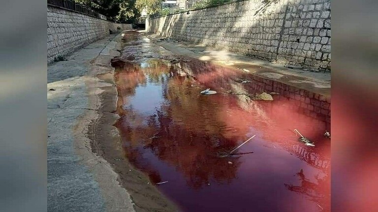 نهر بردى في دمشق يتحول إلى اللون الأحمر