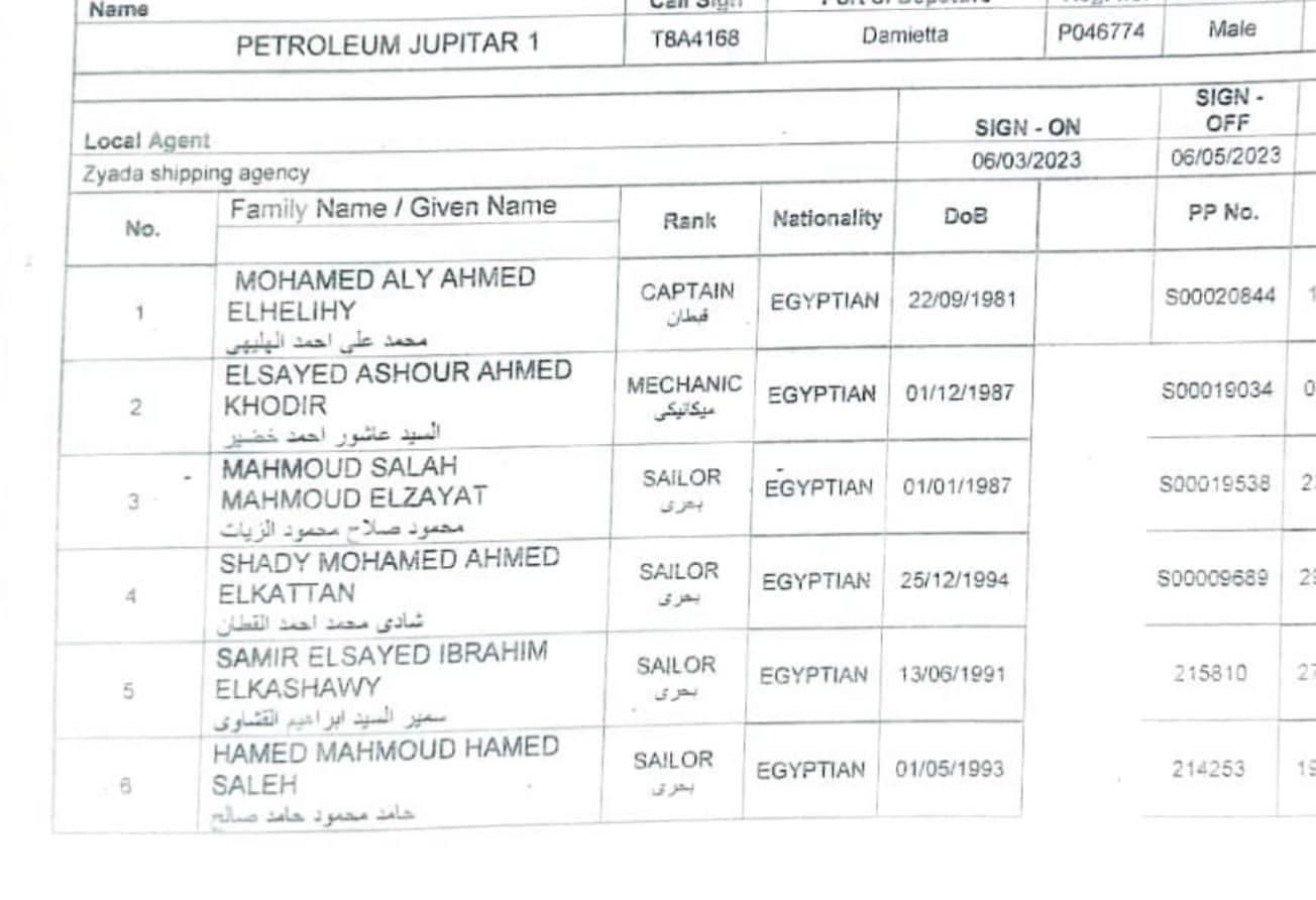 وأضاف:" وصل البحارة الـ ١٤ اليوم مطار القاهرة وتم إنهاء إجراءات خروجهم من كافة الأجهزة المعنية بسلام".