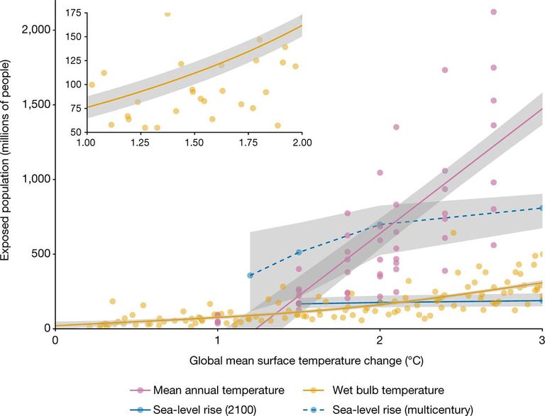 أفادوا في دراستهم أن حوالي 200 مليون شخص في المناطق الفقيرة سيتعرضون لحرارة لا يمكن تحملها، وسيواجه نصف مليار شخص الخراب والدمار بسبب ارتفاع مستوى سطح البحر، حتى لو حقق العالم هدف باريس الأكثر تفاؤلًا وهو 1.5 درجة مئوية.